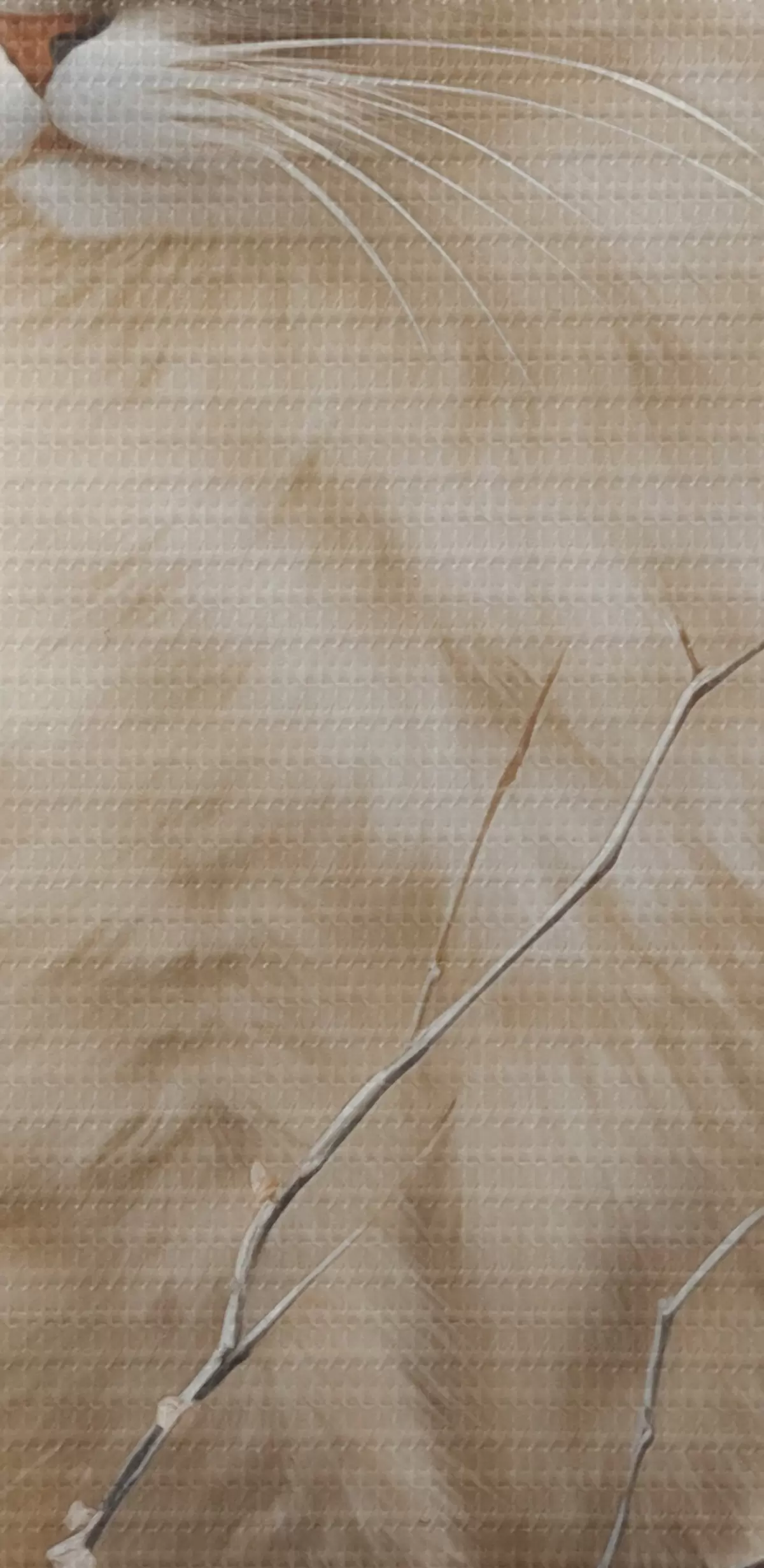 Smalkais diegu pinums uz šī audekla atgādina profesionālu mākslinieku audeklu virsmu.