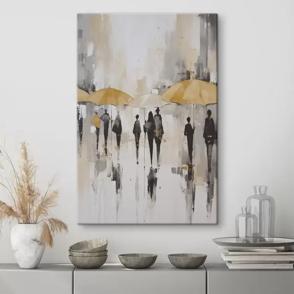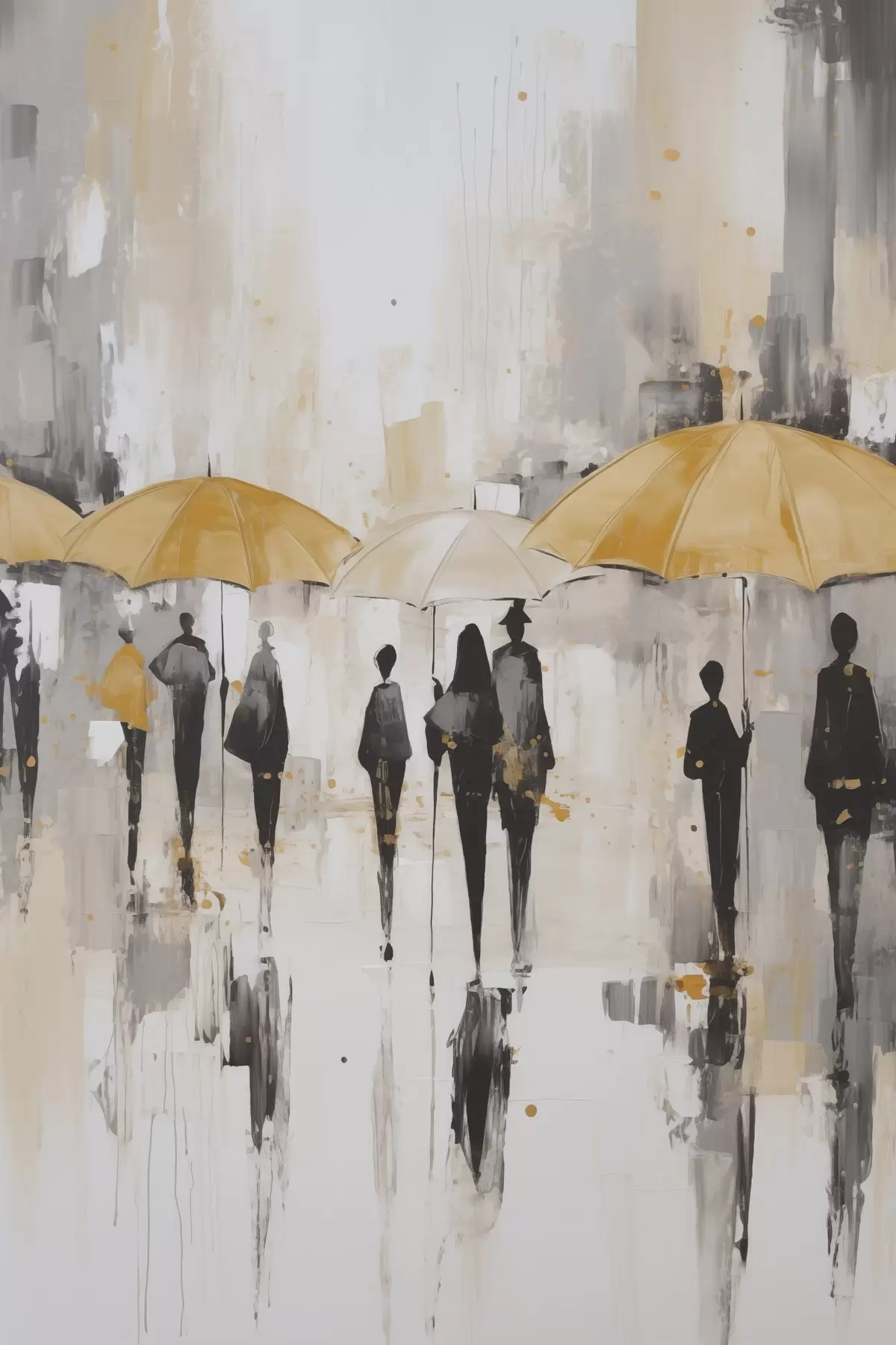 Glezna Abstrakcija par cilvēkiem ar lietussargiem s46304