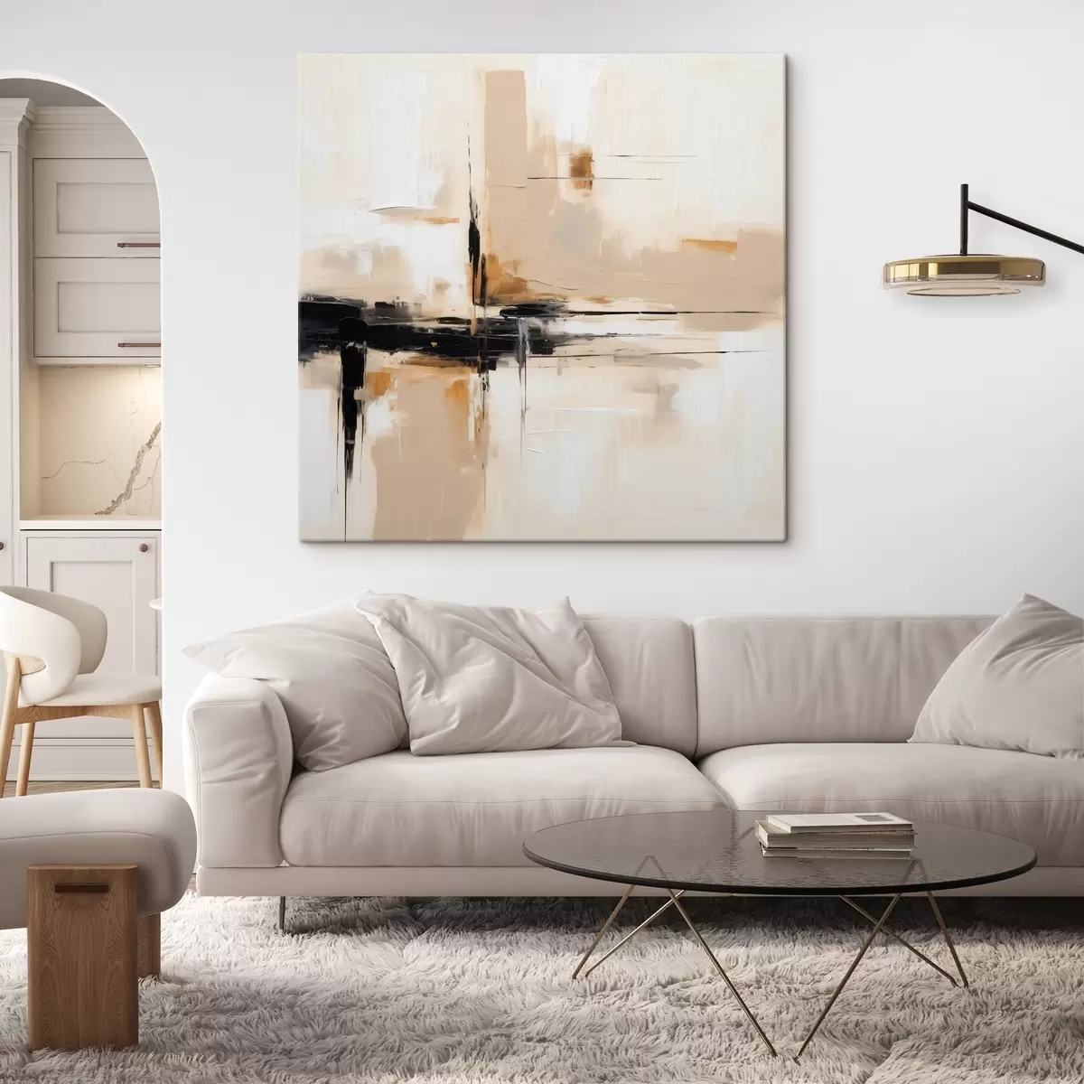 Glezna Bēša un melna, vertikāla abstrakcija minimālisma stilā s46326