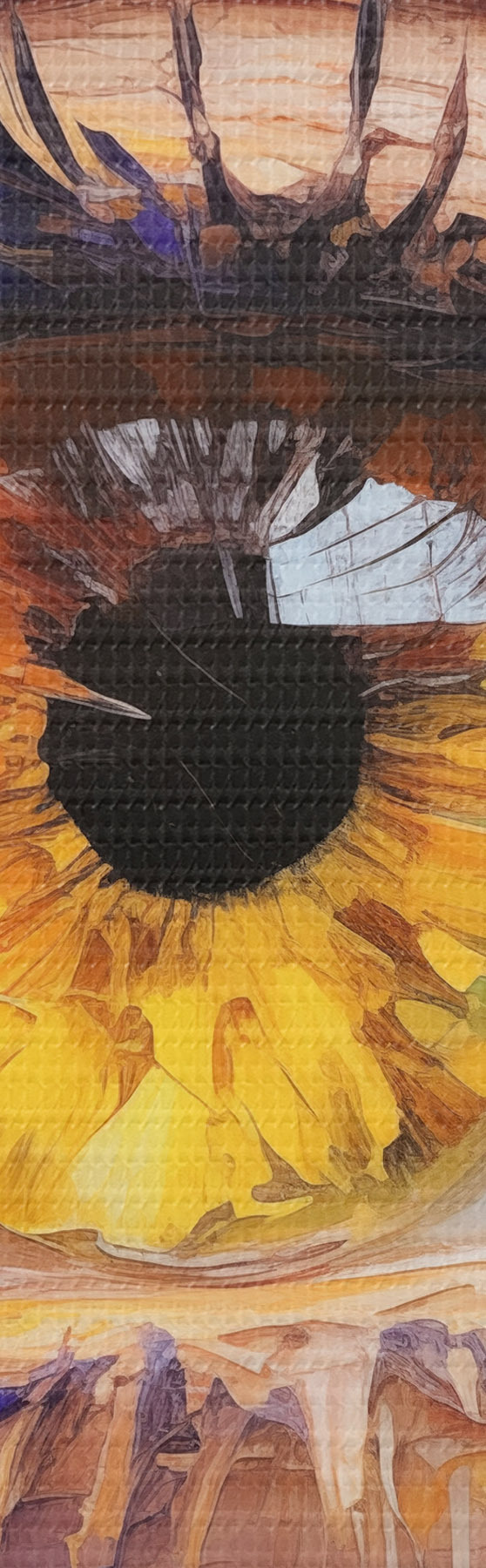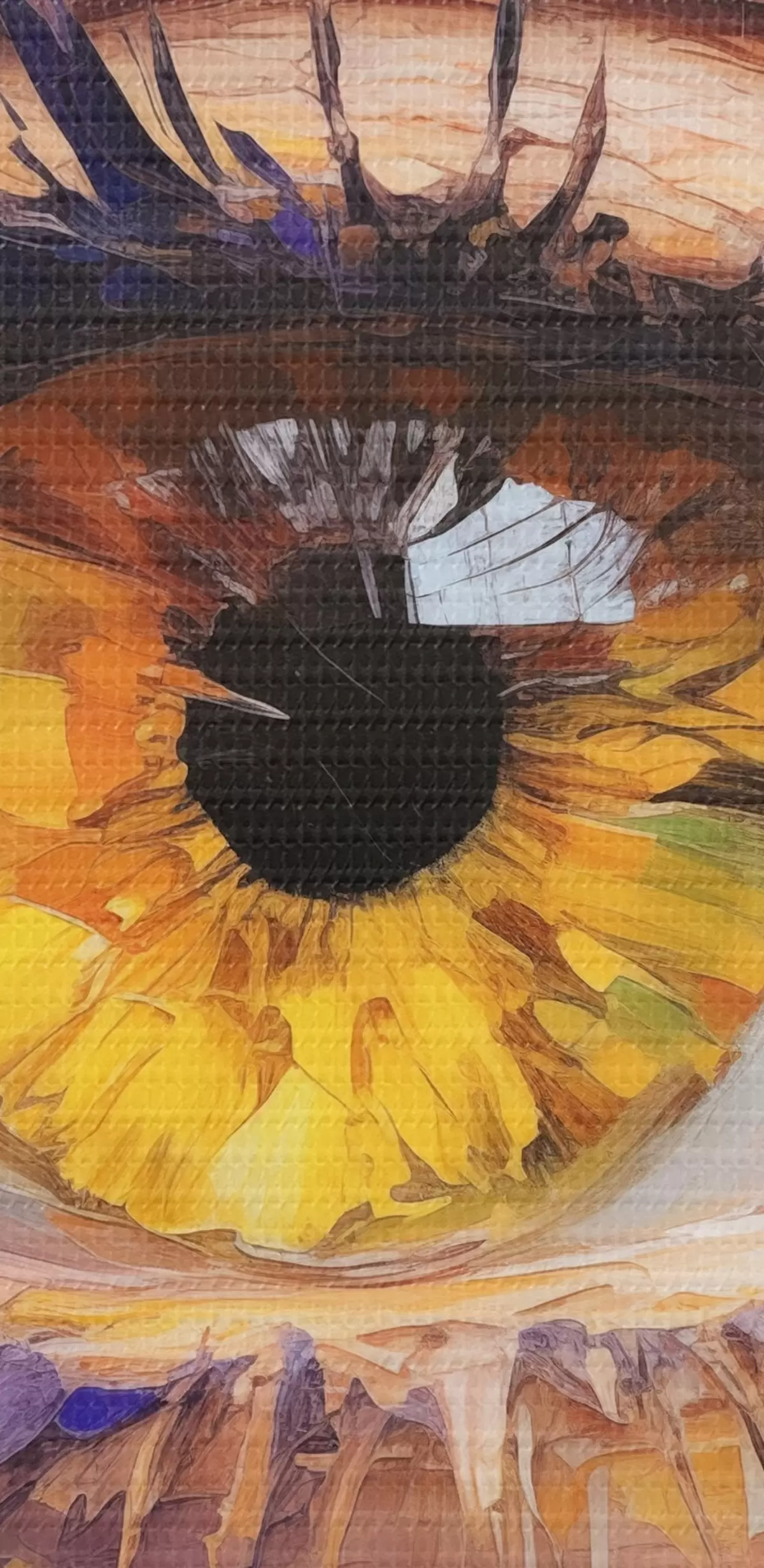 Smalkais diegu pinums uz šī audekla atgādina profesionālu mākslinieku audeklu virsmu.