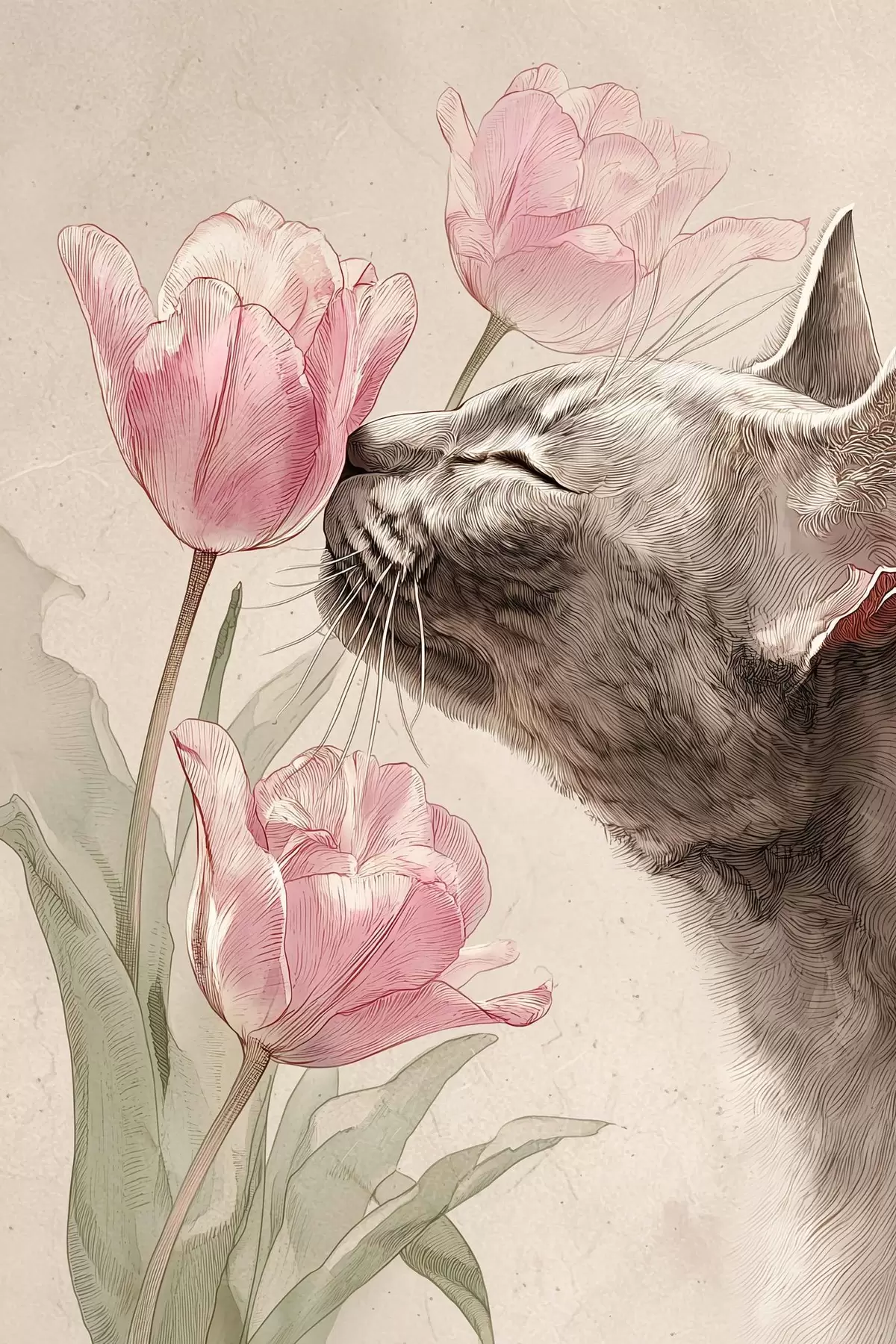 Glezna Kaķis un ziedi s46427