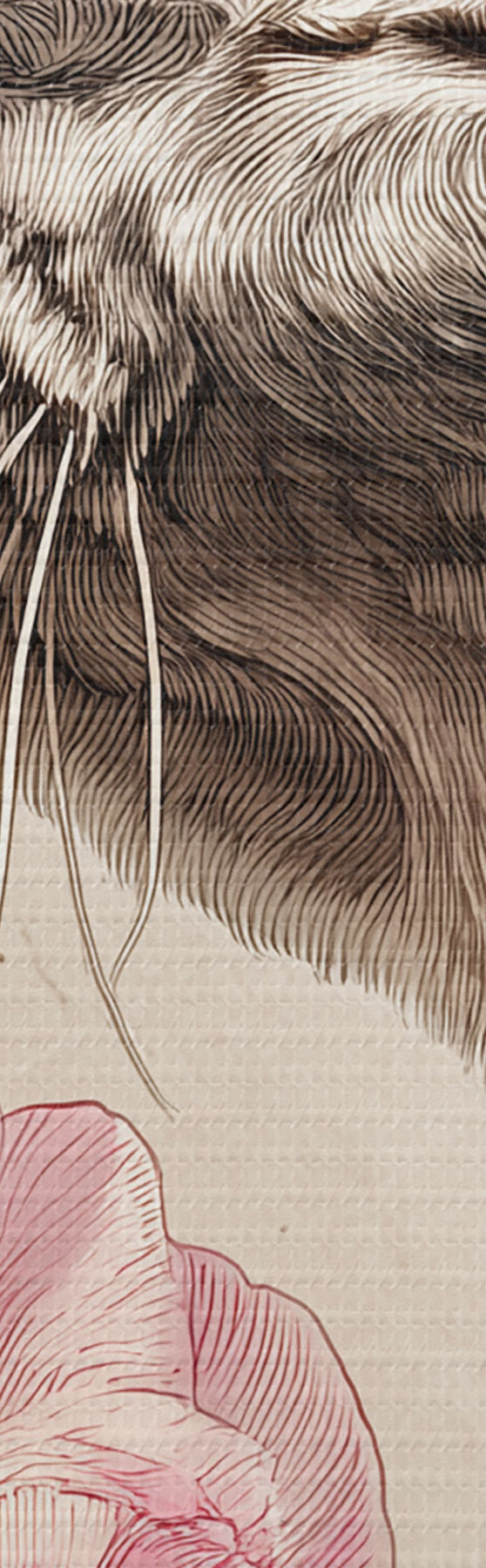 Smalkais diegu pinums uz šī audekla atgādina profesionālu mākslinieku audeklu virsmu.
