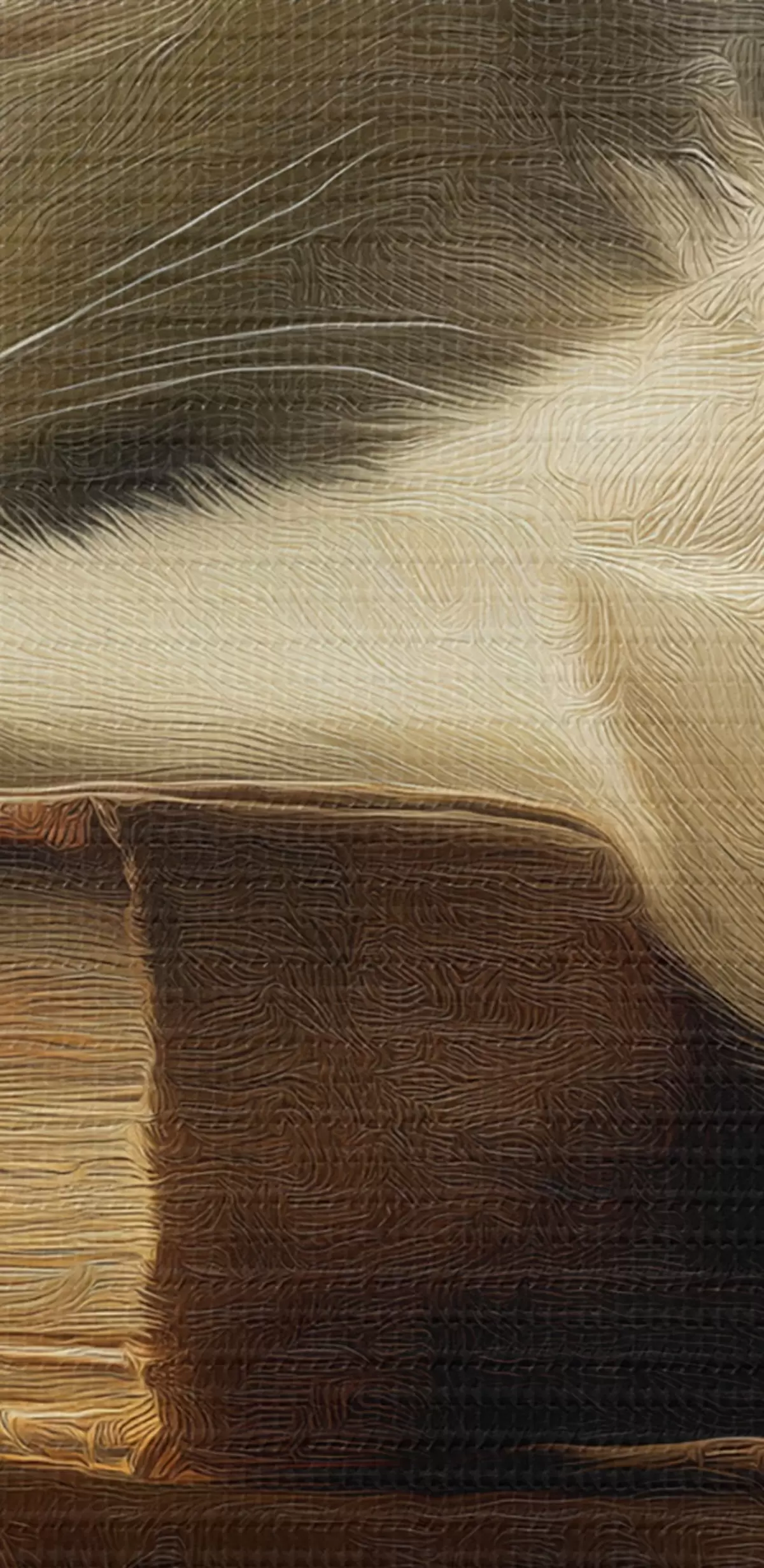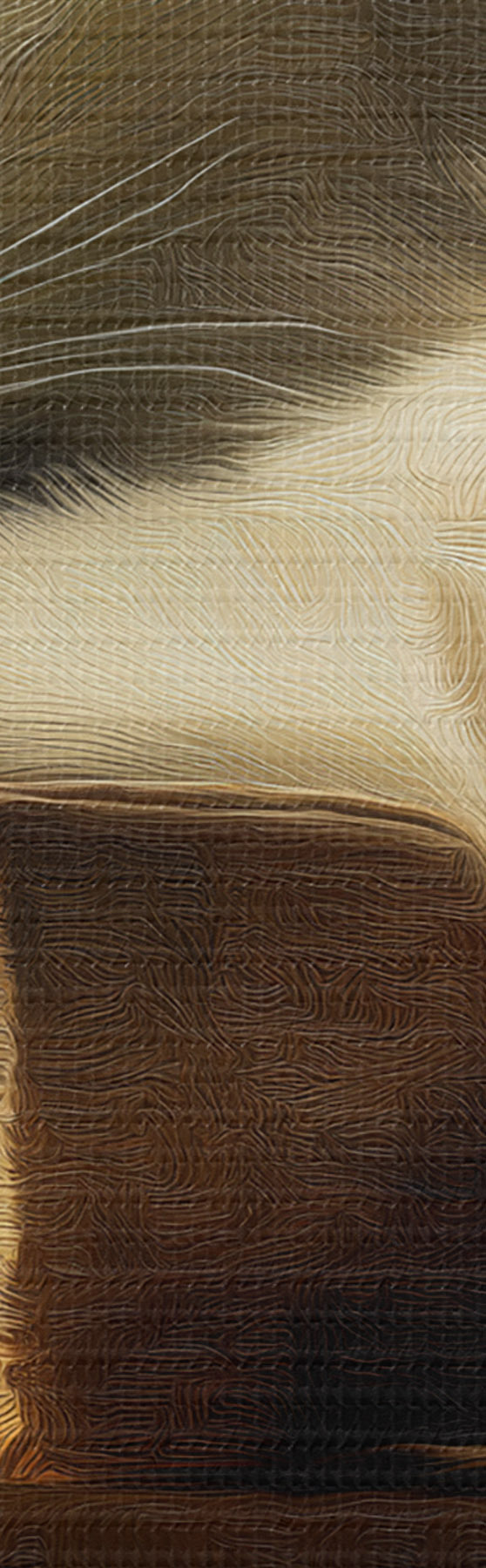 Smalkais diegu pinums uz šī audekla atgādina profesionālu mākslinieku audeklu virsmu.