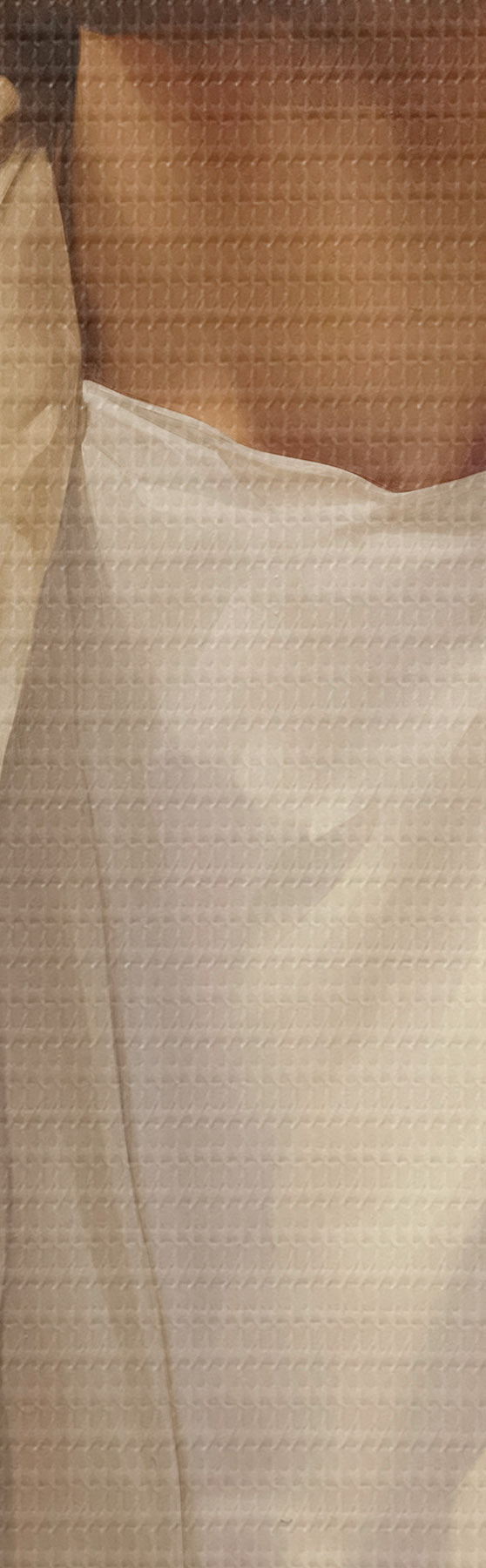 Lai izstieptu audeklu uz nestuvēm, nebojājot attēlu, mēs izmantojam spoguļattēlu.