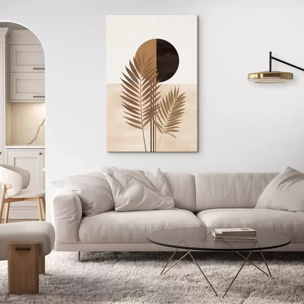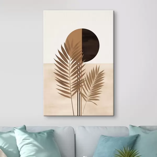 Glezna Divas palmu lapas ar sadalītu apļa saules motīvu s46491