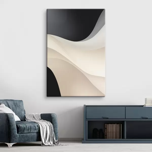 Glezna Slāņveida plūstošas līknes melnā, krēmkrāsā un pelēkbrūnā krāsā Nr s46492