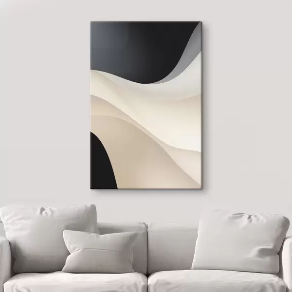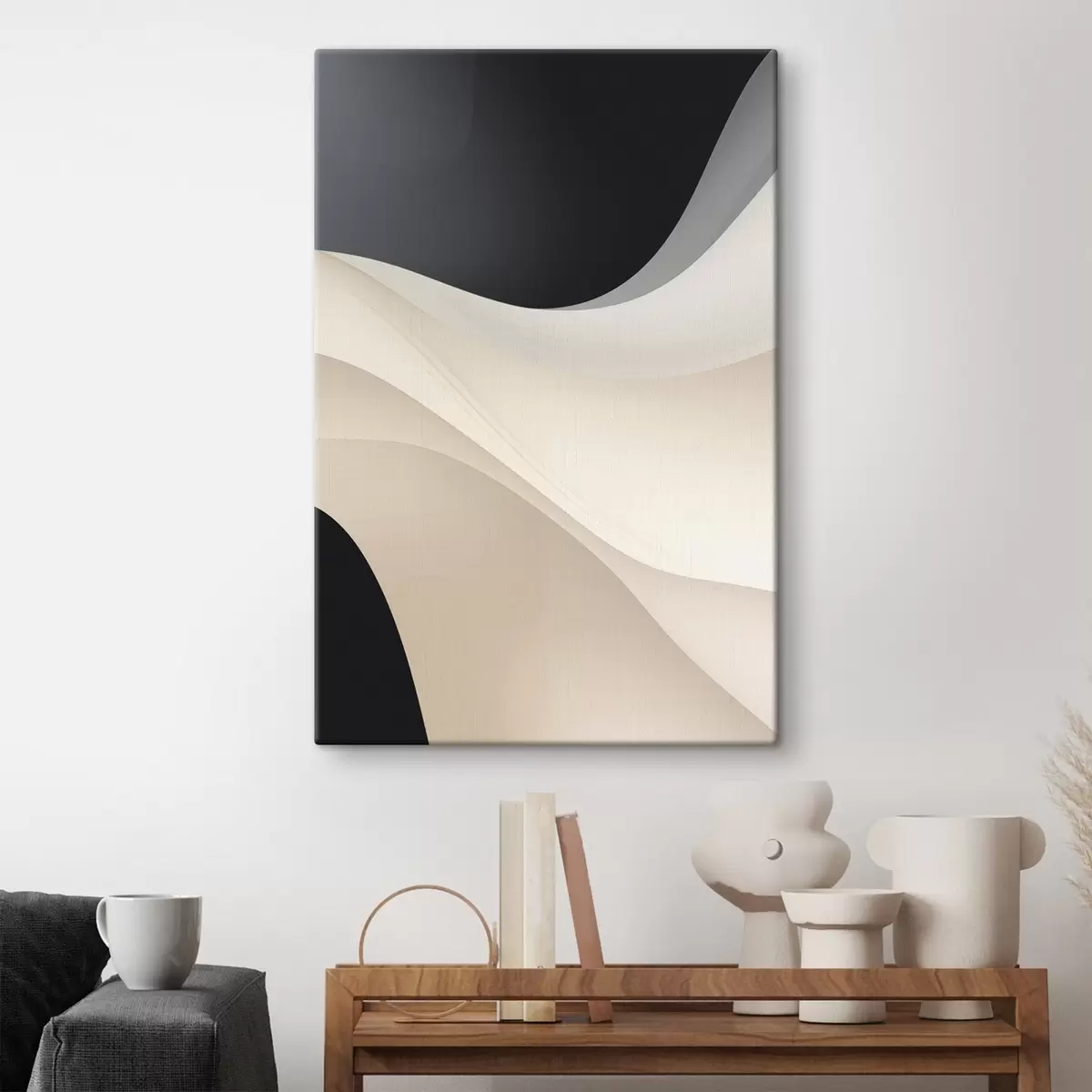Glezna Slāņveida plūstošas līknes melnā, krēmkrāsā un pelēkbrūnā krāsā s46492