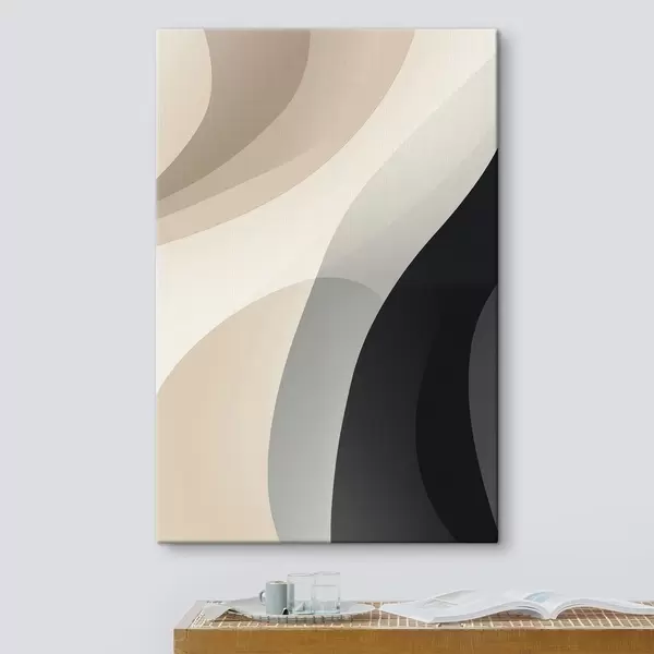 Glezna Organiskas viļņu formas siltā smilškrāsā un ogļu krāsā s46494