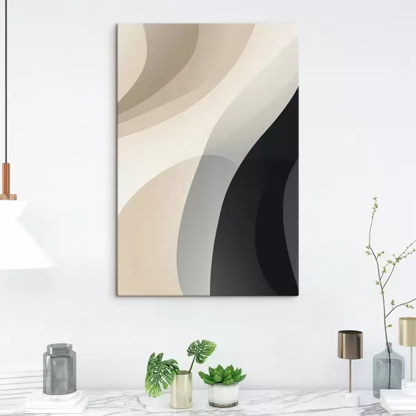 Glezna Organiskas viļņu formas siltā smilškrāsā un ogļu krāsā s46494