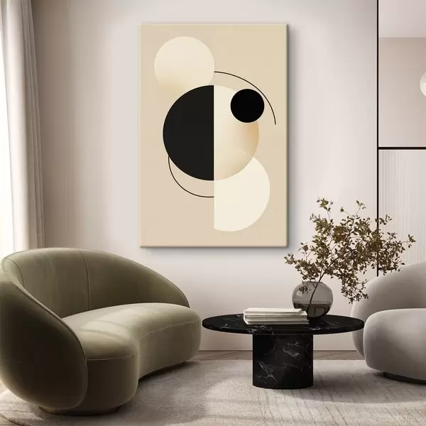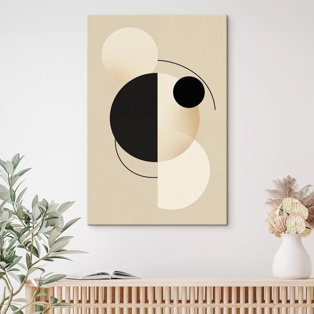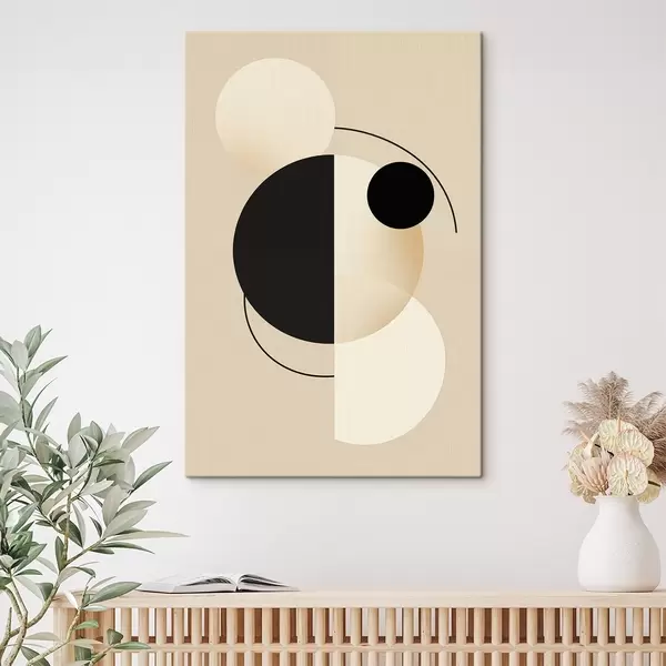 Glezna Grafiskie apļi un loki maigā smilškrāsā un melnā krāsā s46497