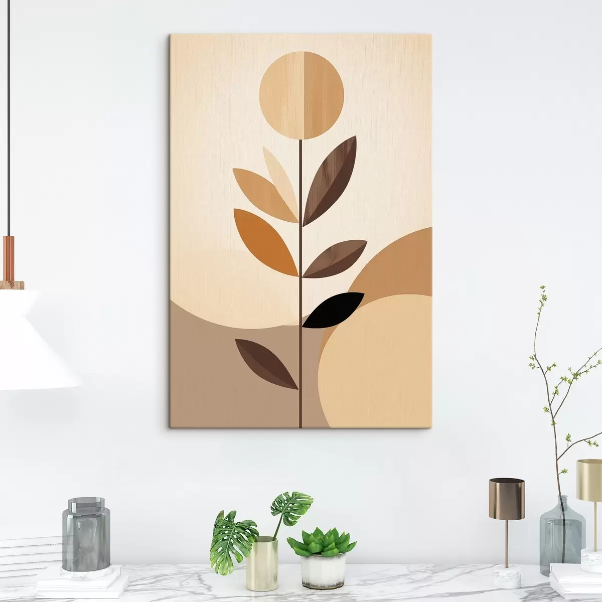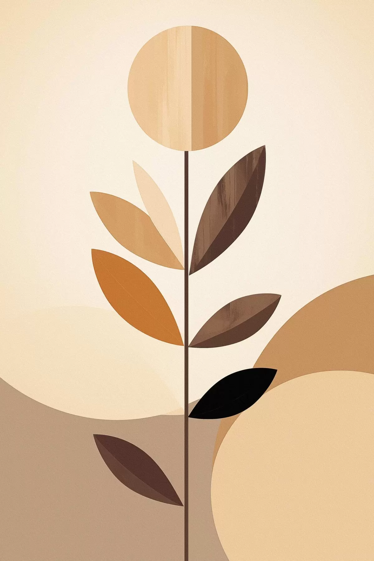 Glezna Stilizēts zieds ar ģeometriskām lapām siltos toņos s46500