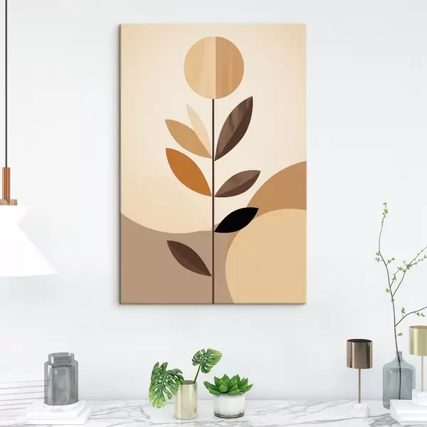 Glezna Stilizēts zieds ar ģeometriskām lapām siltos toņos Nr s46500