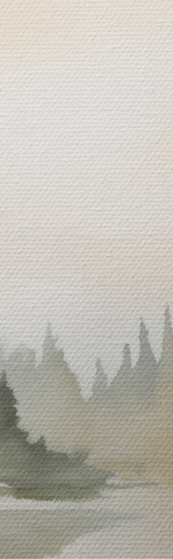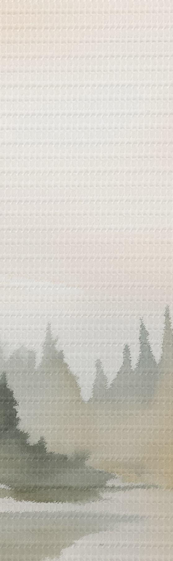 Glezna Miglas apklāts skujkoku mežs virs rāma upes, akvareļa stilā Nr s46507