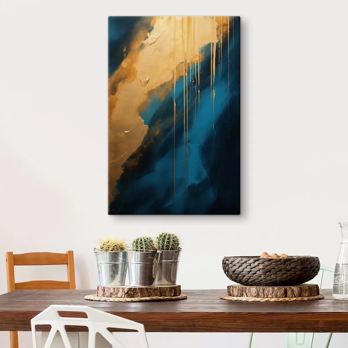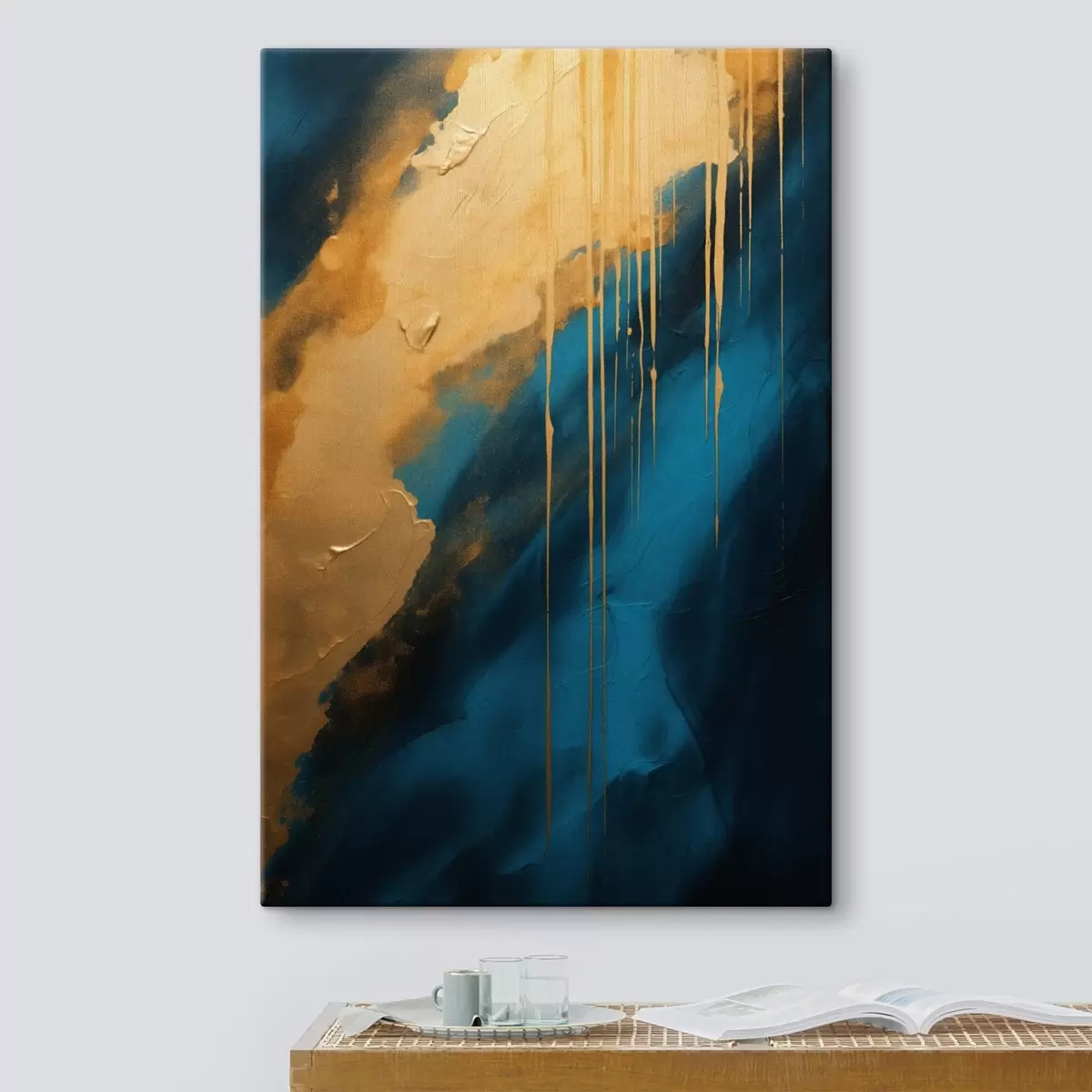 Glezna Tirkīza un tumši zila abstrakcija ar plūstošiem siltu toņu akcentiem s46509