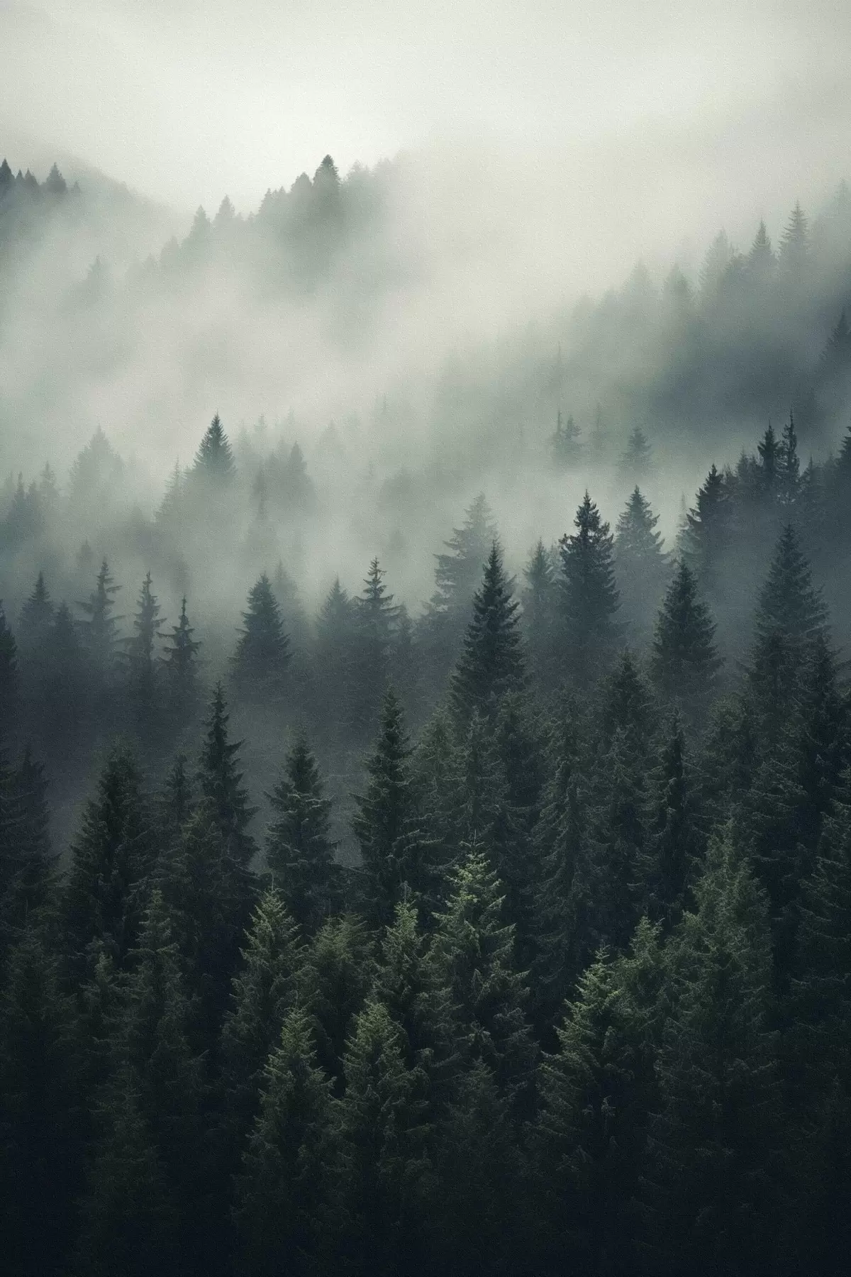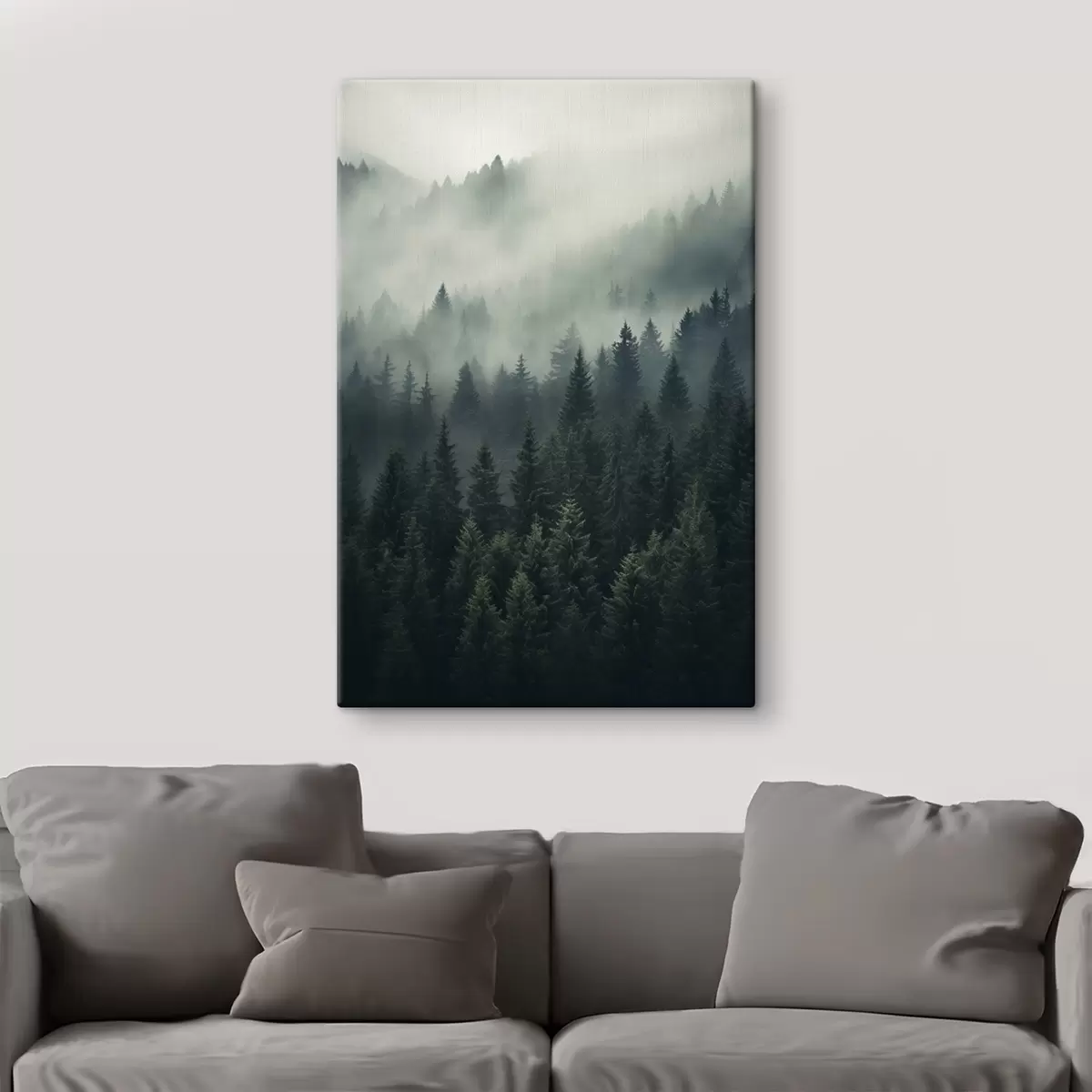 Glezna Migla pārklāj blīvu mūžzaļo mežu Nr s46512