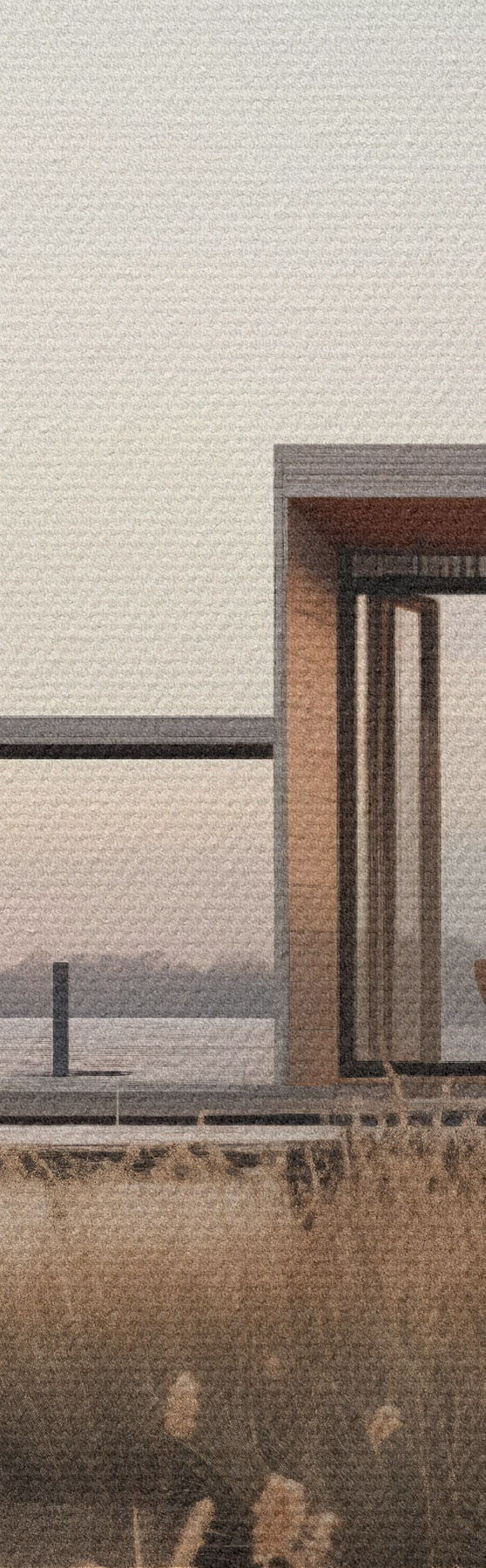 Glezna Mūsdienīga māja ezera krastā niedru vidū maigā krēslas laikā Nr s46513