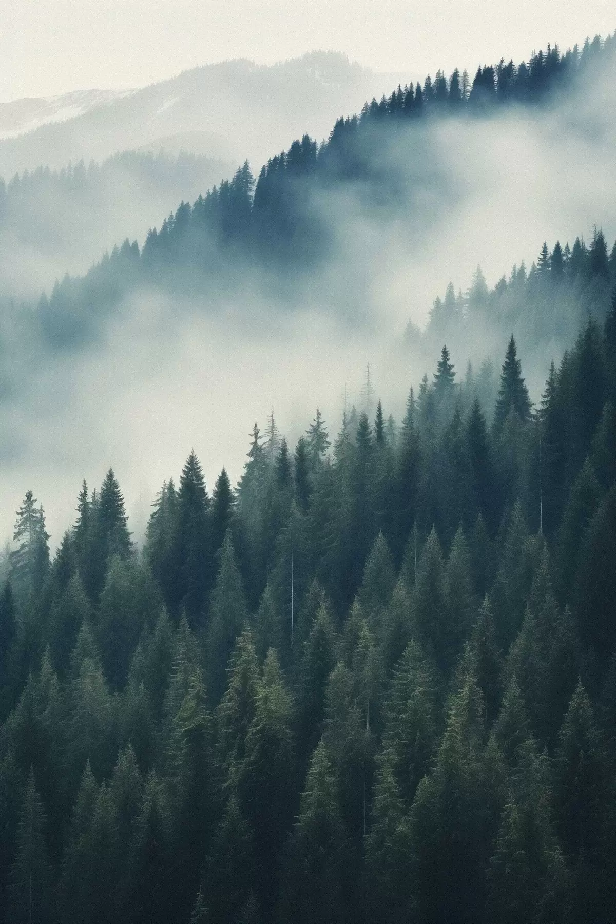 Glezna Migla virs skujkoku nogāzēm, dziļi zaļie toņi s46516