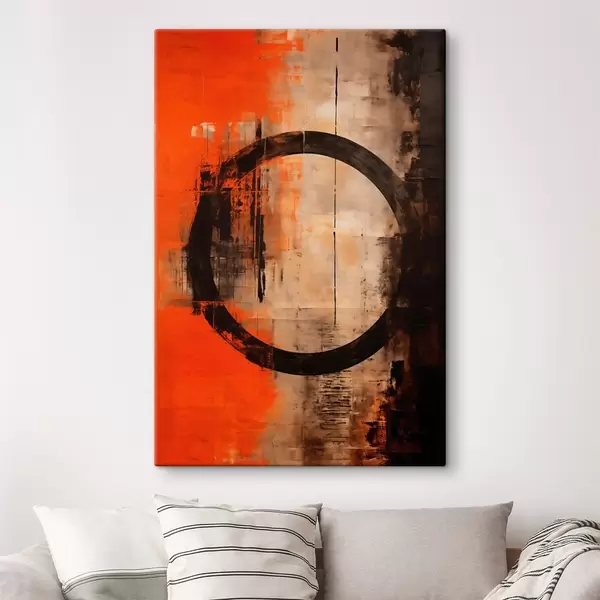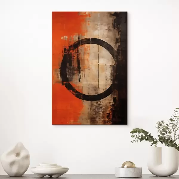 Glezna Abstrakts ar lielu melnu apli un siltām tekstūrām s46528