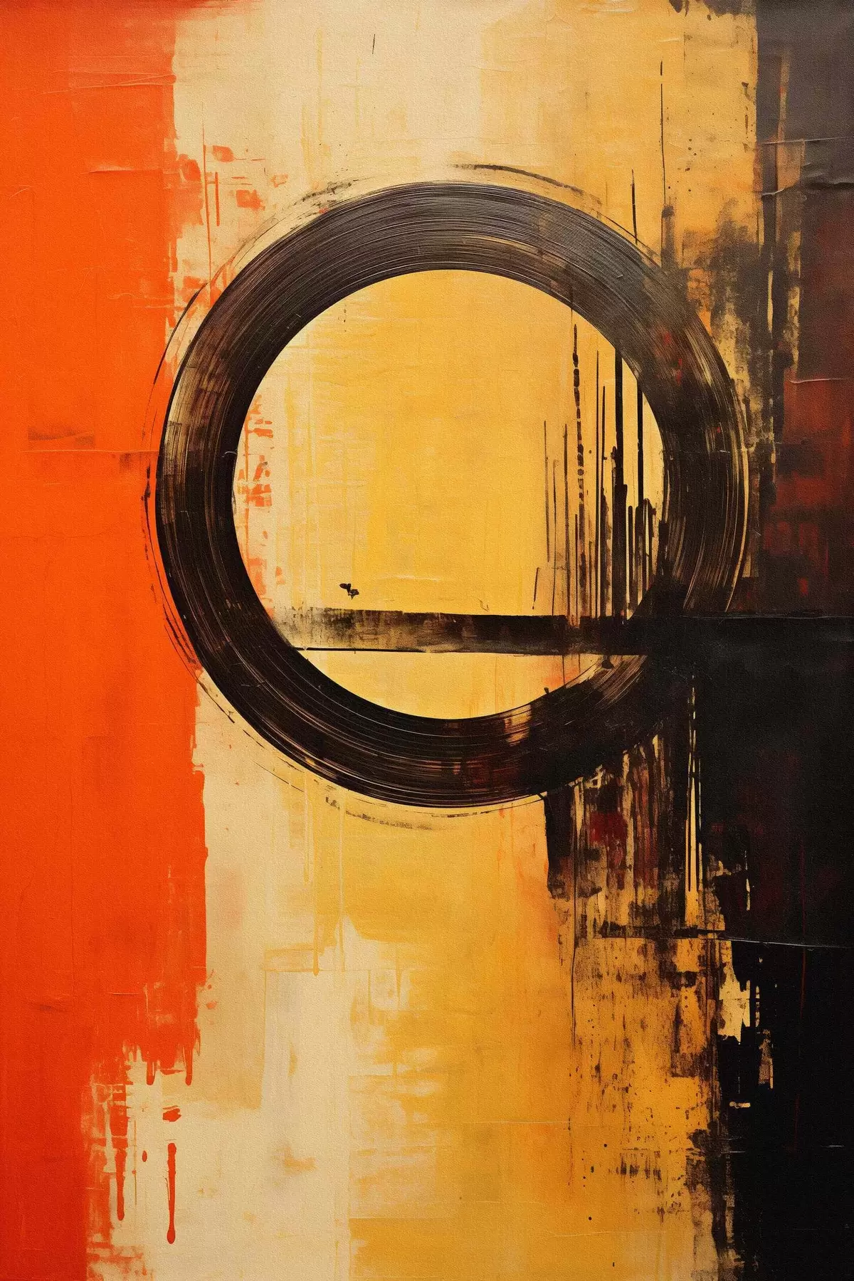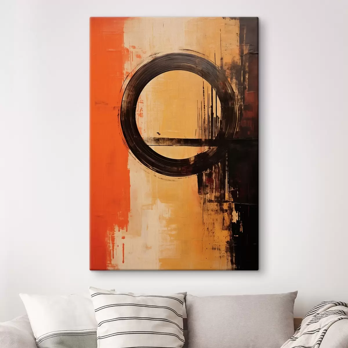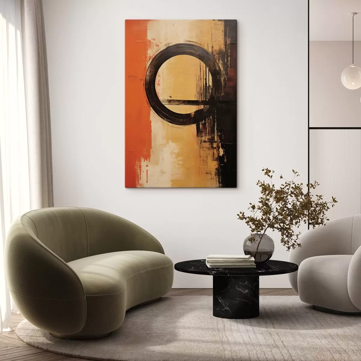 Glezna Abstrakts ar melnu gredzenu uz terakotas smilšu fona s46529