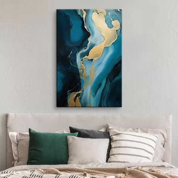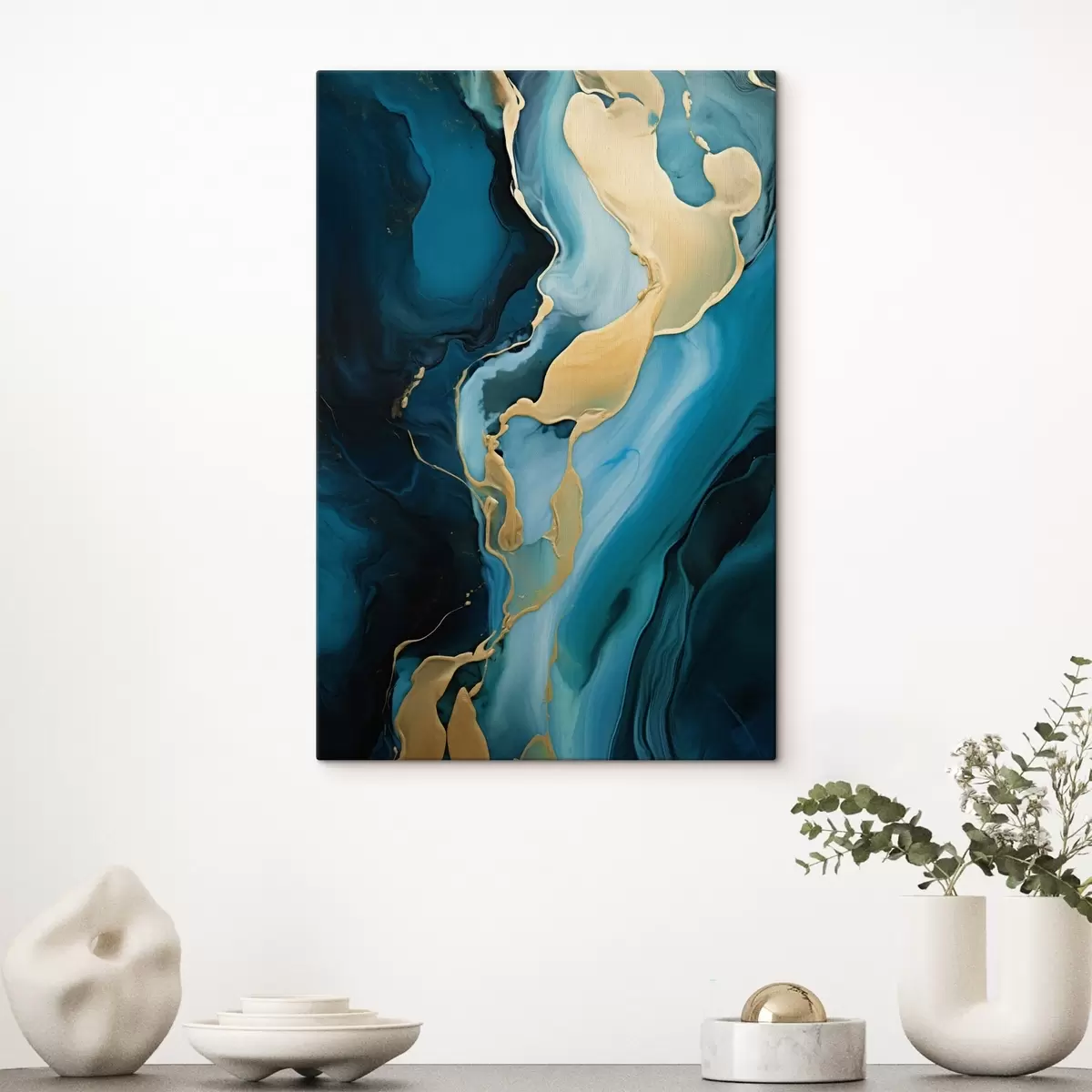 Glezna Tirkīza zils abstrakts ar okera plūsmu s46530