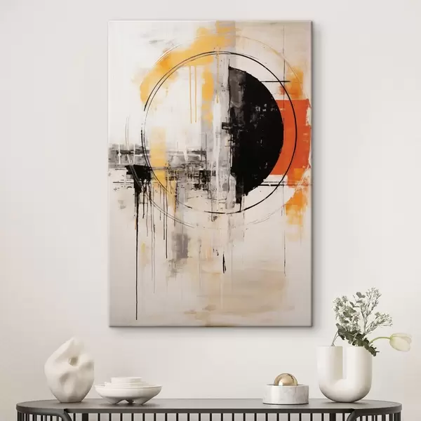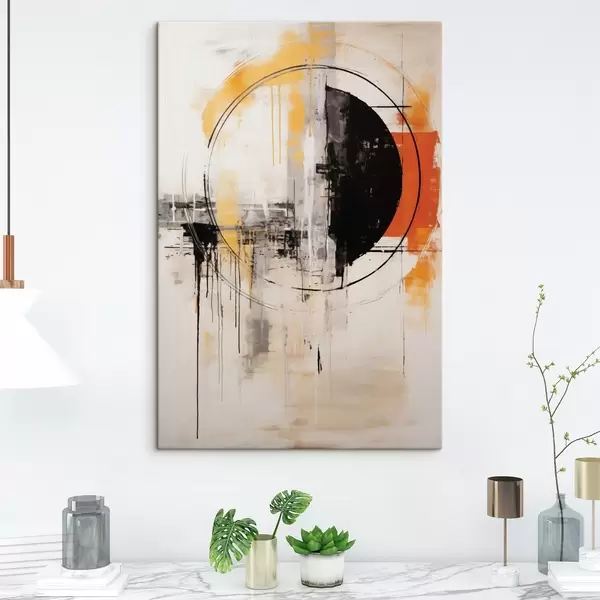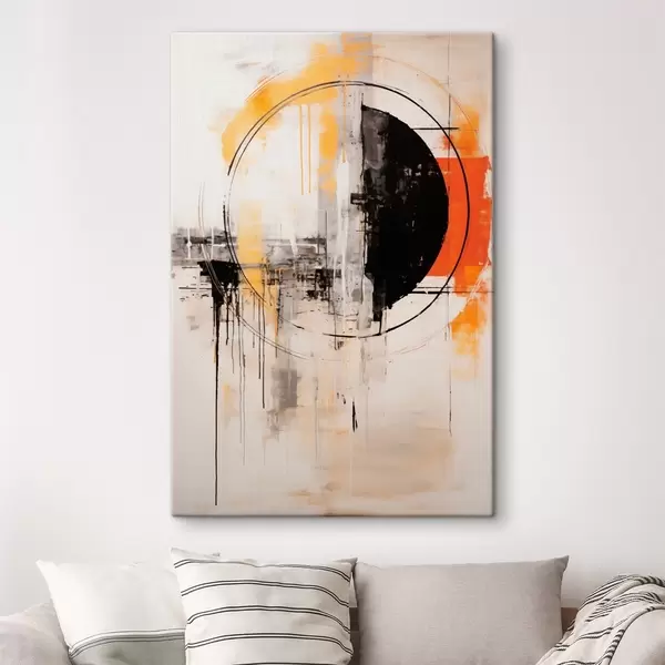 Glezna Monochroms oranžs aplis ar teksturētiem pilieniem Nr s46536