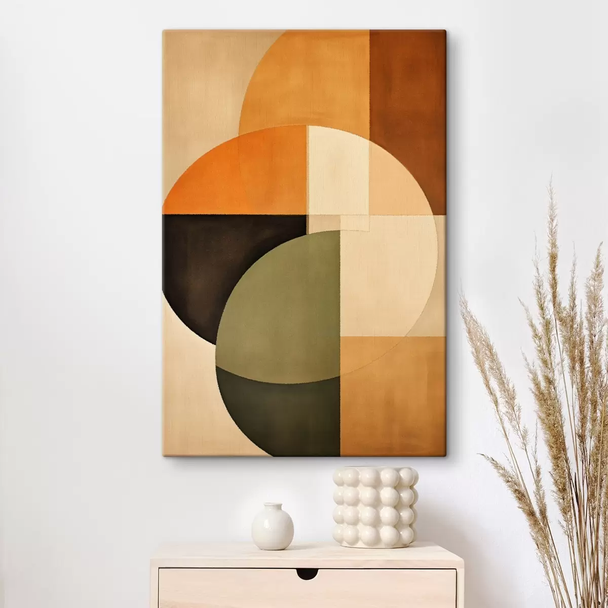Glezna Krustojošies apļi smilškrāsas un olīvu krāsas toņos s46537