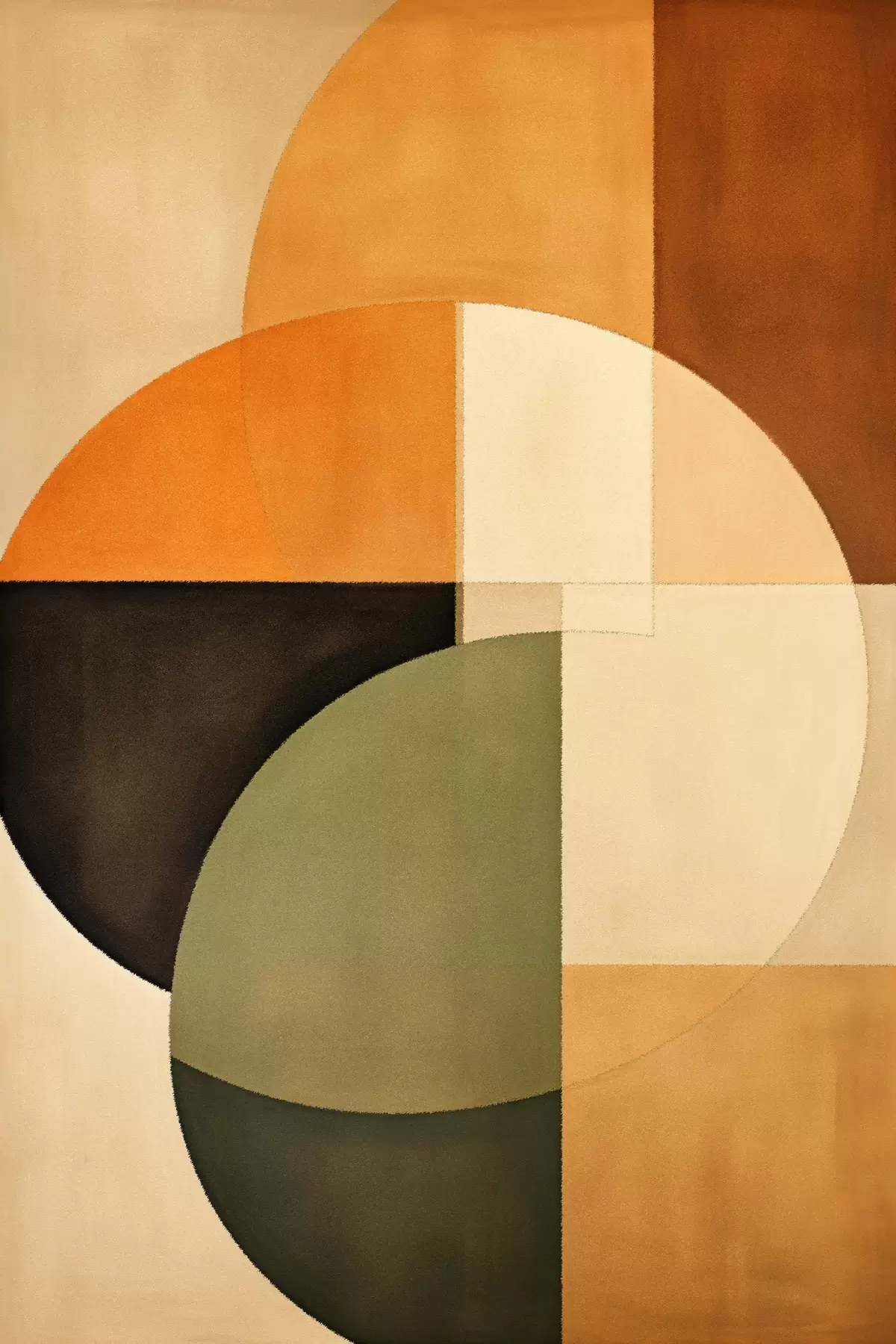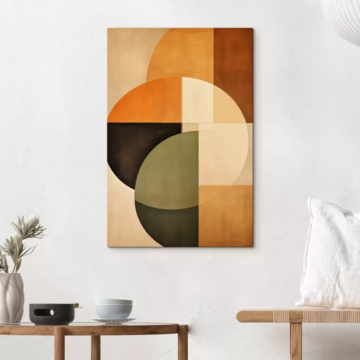 Glezna Krustojošies apļi smilškrāsas un olīvu krāsas toņos s46537