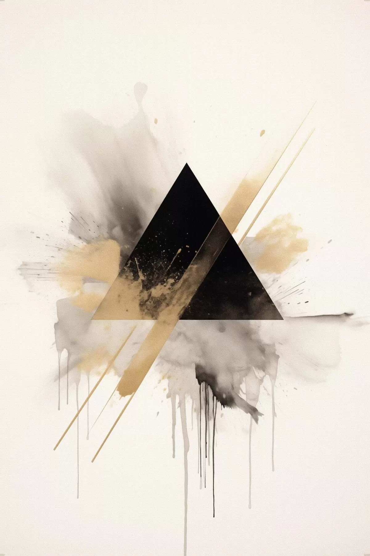 Glezna Ģeometrija: melns trīsstūris ar gaišiem plankumiem un līnijām Nr s46540