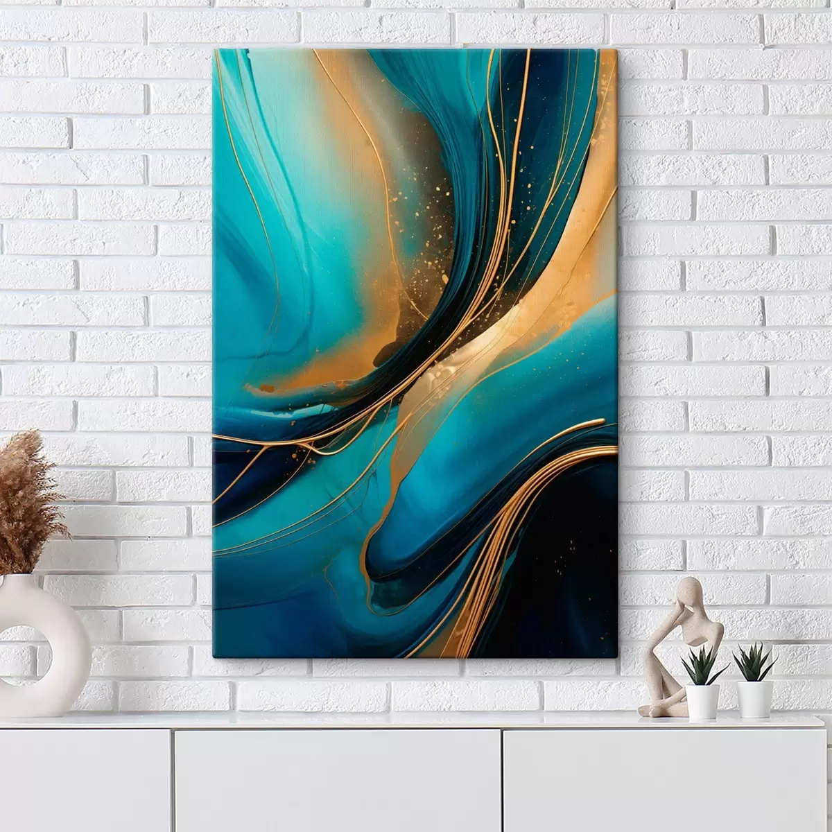 Glezna Tirkīza plūsma ar plānām okera pavedienu līnijām s46543