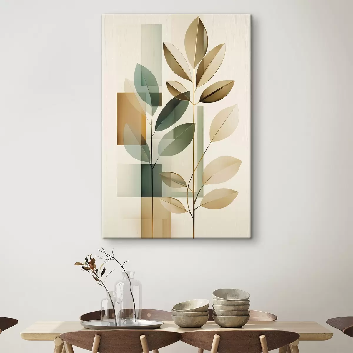 Glezna Ģeometriska abstrakcija ar lapām s46581