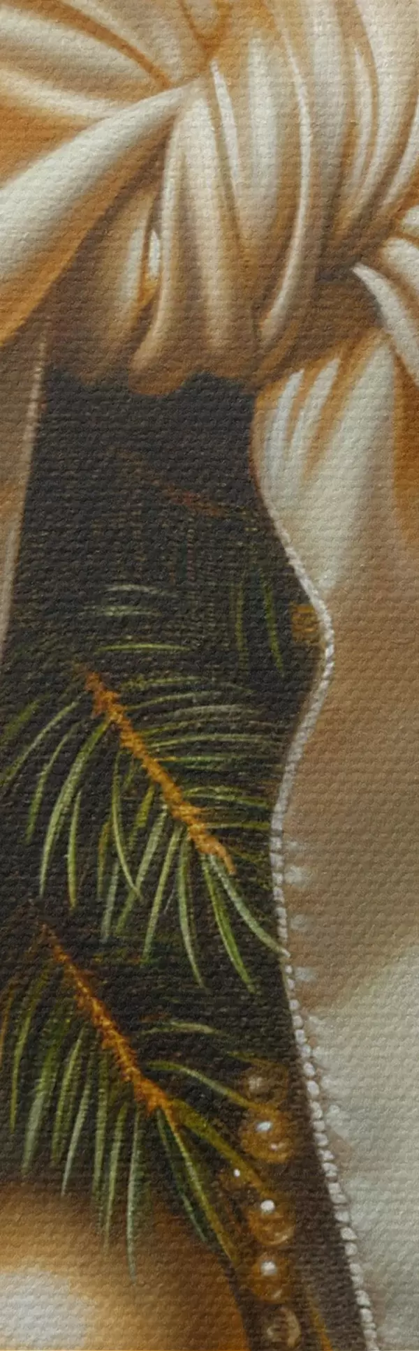 Smalkais diegu pinums uz šī audekla atgādina profesionālu mākslinieku audeklu virsmu.