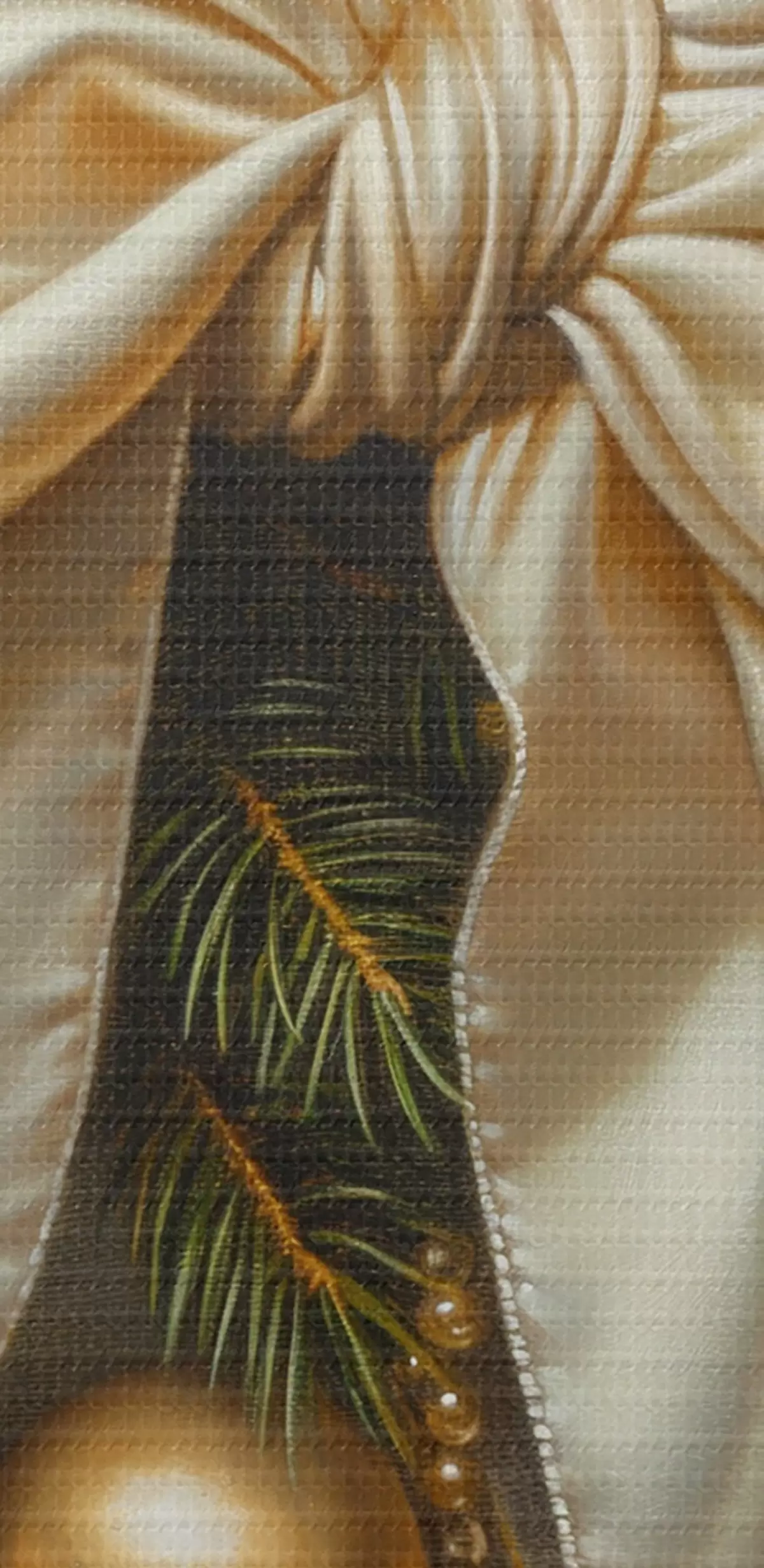 Smalkais diegu pinums uz šī audekla atgādina profesionālu mākslinieku audeklu virsmu.