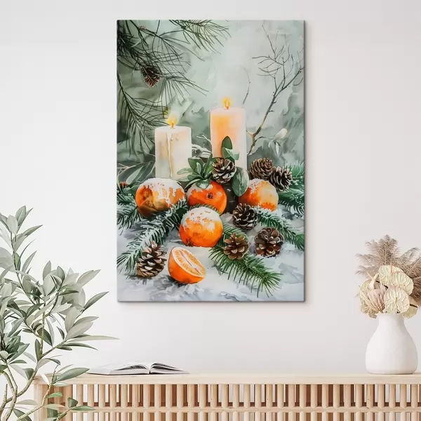 Glezna Sveces, mandarīni un priežu čiekuri s46614