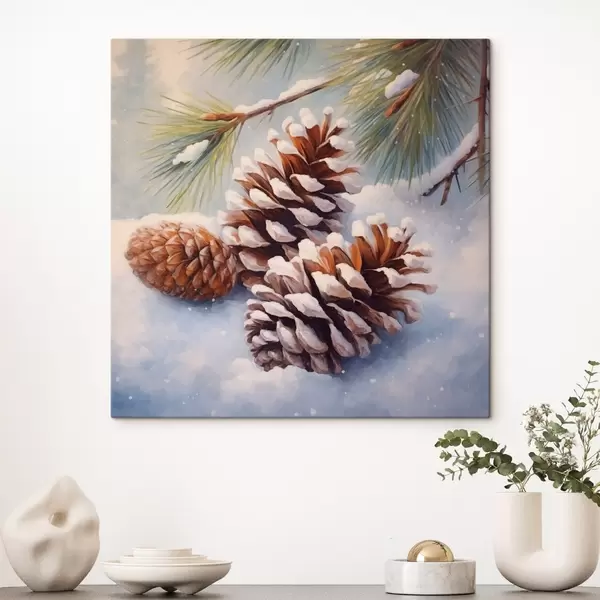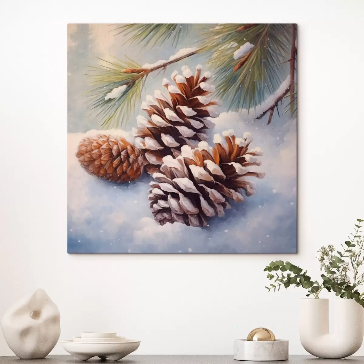 Glezna Sniega klātas priežu čiekuri un zari Nr s46631