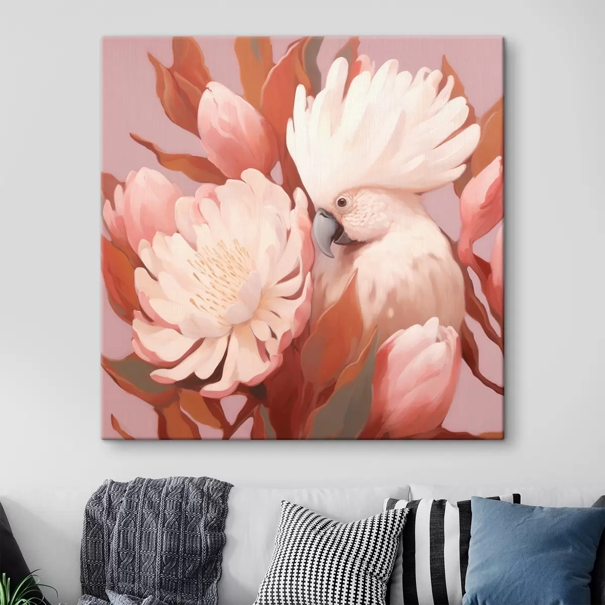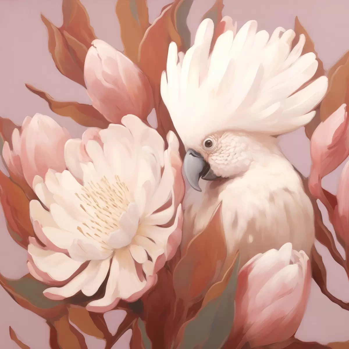 Glezna Abstrakts māksliniecisks putna attēlojums ziedu kompozīcijā Nr s46667