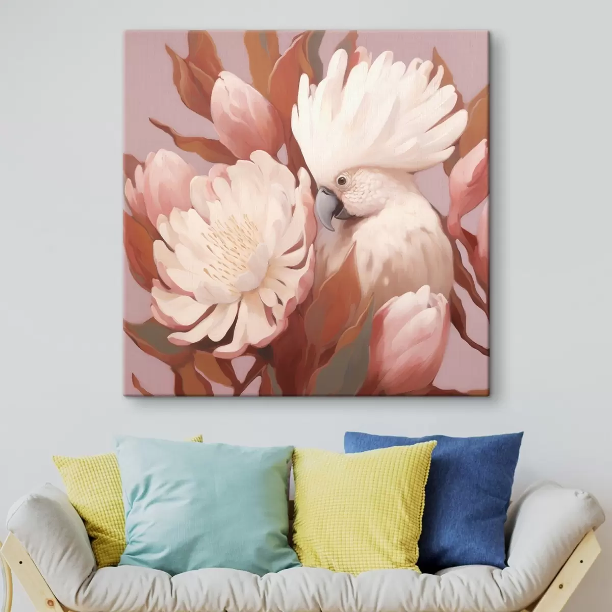 Glezna Abstrakts māksliniecisks putna attēlojums ziedu kompozīcijā s46667