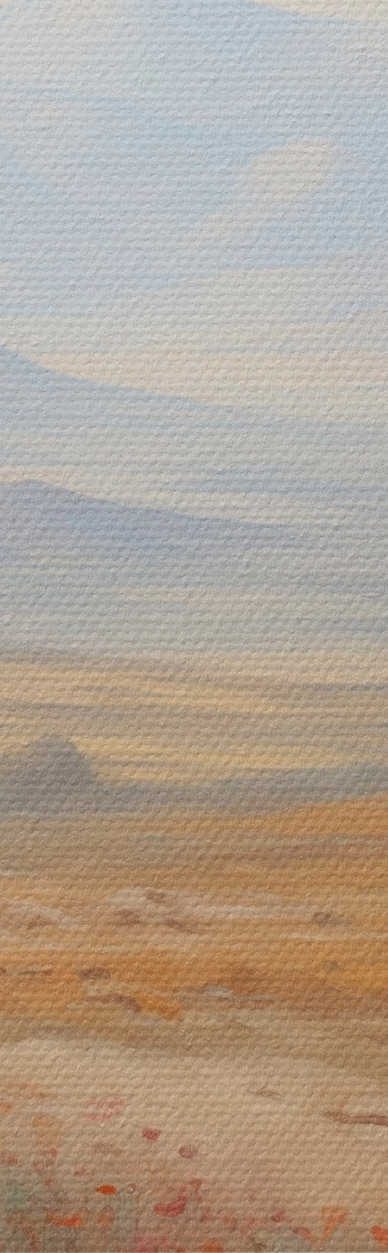 Glezna Ainava, krāsainu ziedu lauks ar kalniem fonā, maigas un pasteļtoņos krāsas s46685