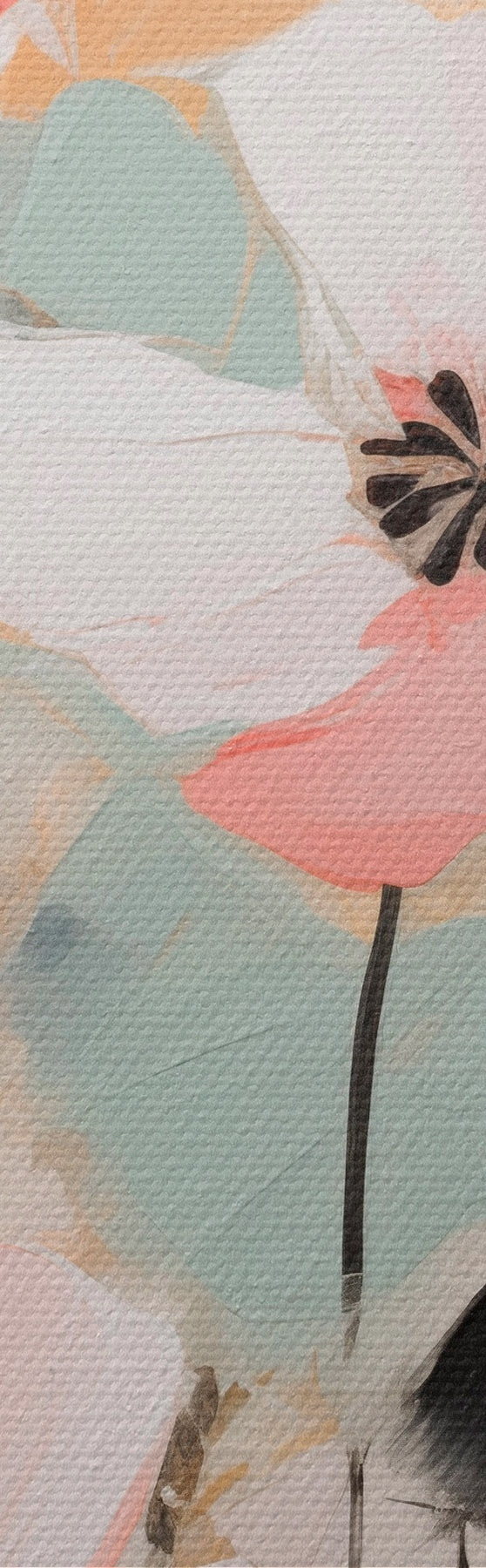 Glezna Rozā un melni ziedi ar lapām, maigas pasteļtoņos, abstrakts ziedu kompozīcija, minimālisma māksla Nr s46688