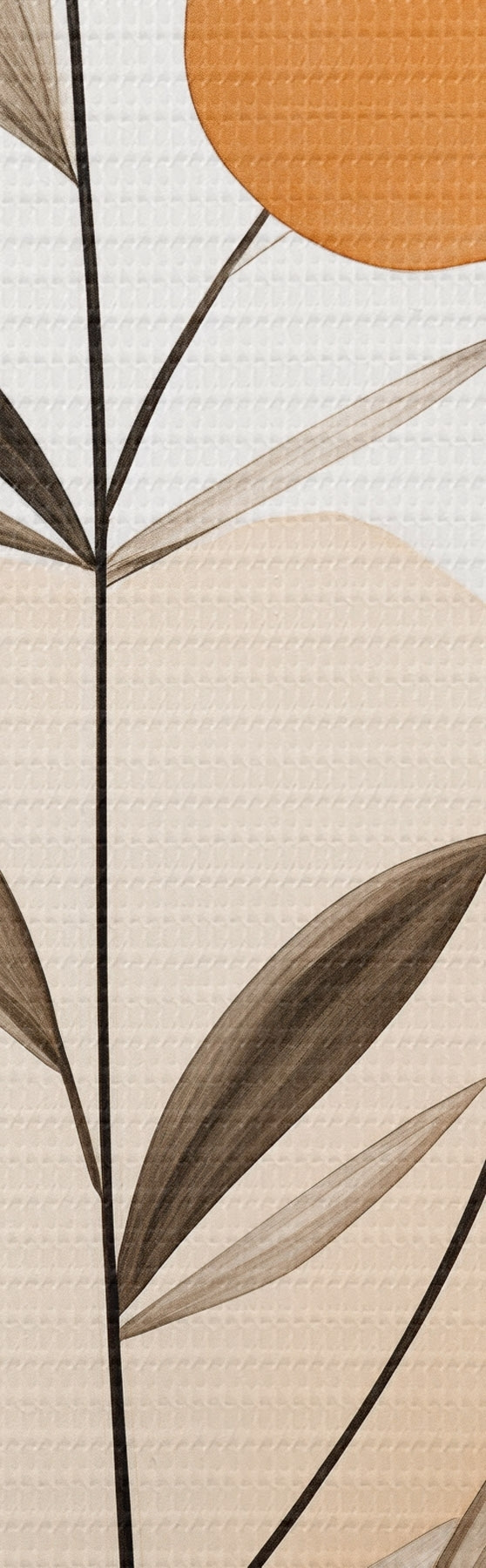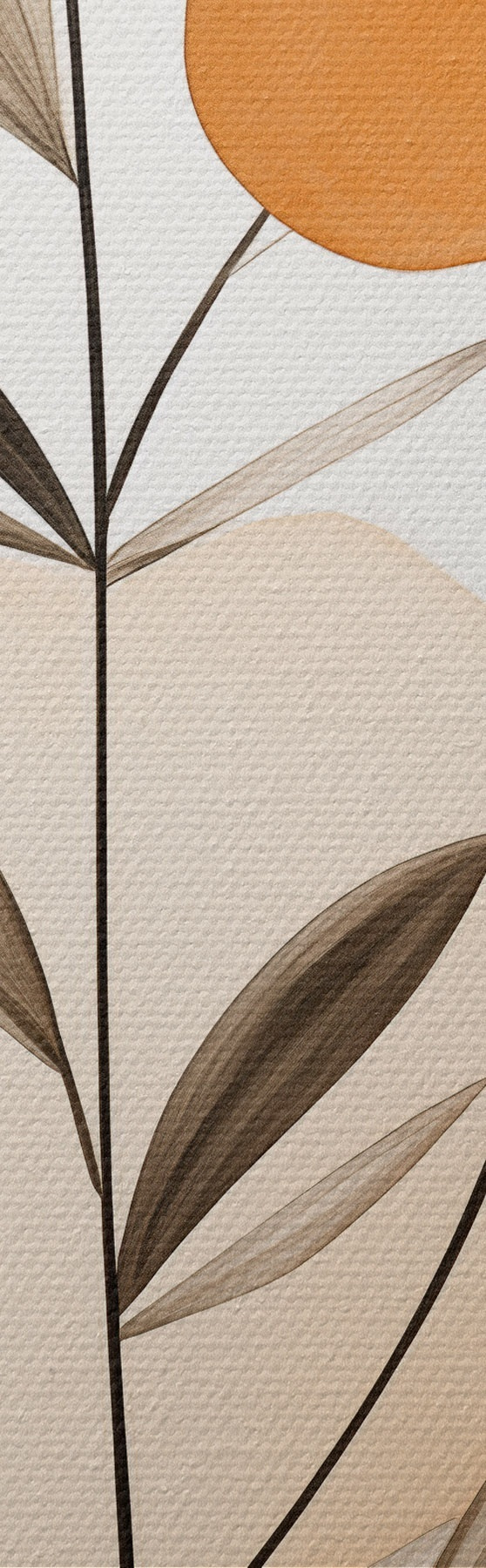 Glezna Abstrakta glezna ar oranžiem un pelēkiem apļiem, lapām un zariem, modernā stilā, akvareļa efekts Nr s46698