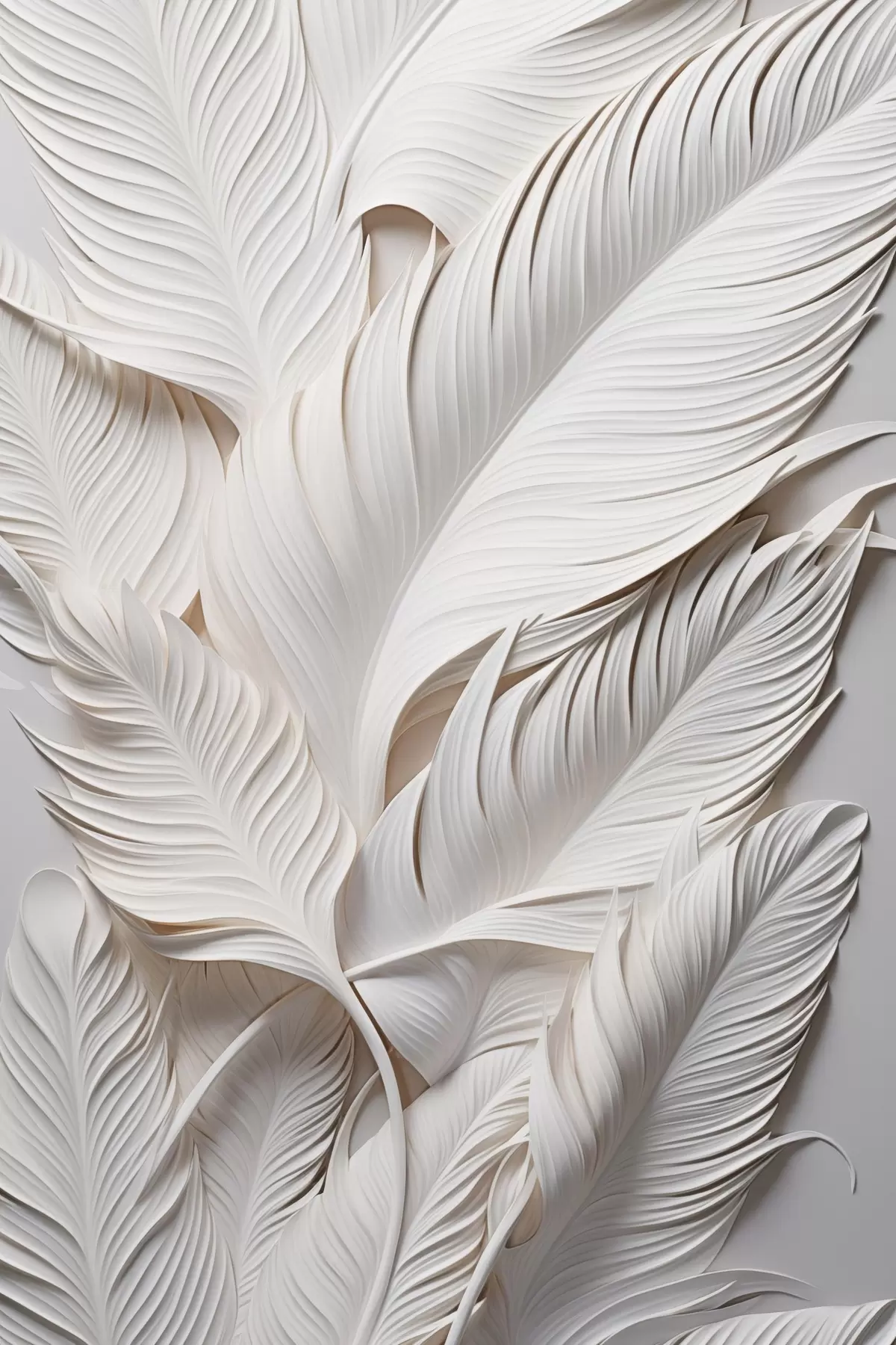 Glezna Baltas lapas ar sarežģītiem detaļiem, radot teksturētu un slāņotu efektu, minimālisma māksla Nr s46706