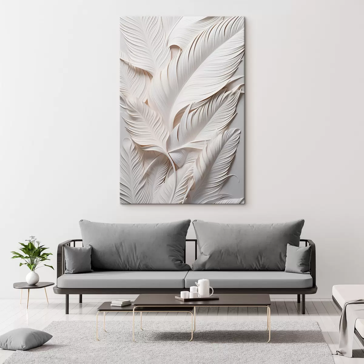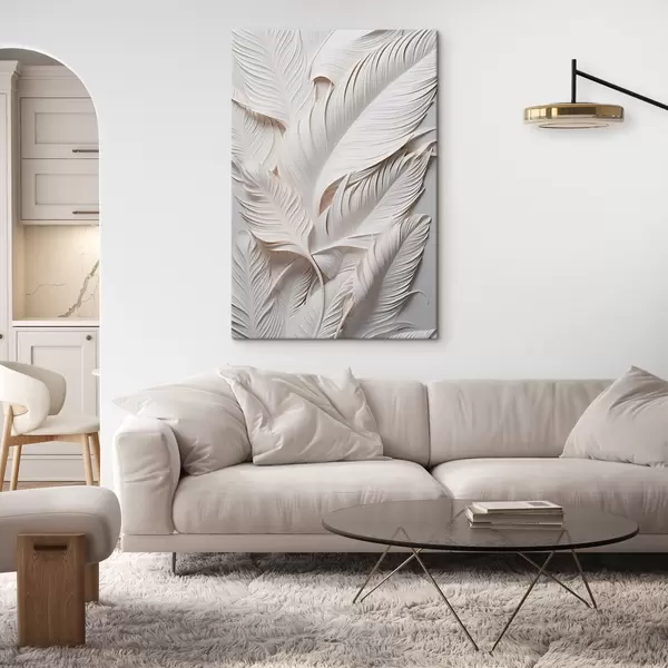Glezna Baltas lapas ar sarežģītiem detaļiem, radot teksturētu un slāņotu efektu, minimālisma māksla s46706