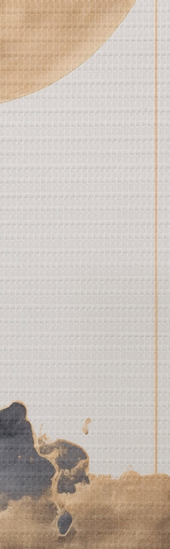 Glezna Pilnmēness ar melniem un teksturētiem dzelteniem mākoņiem, vertikālām līnijām, abstraktā stilā, minimālistisks un moderns s46707