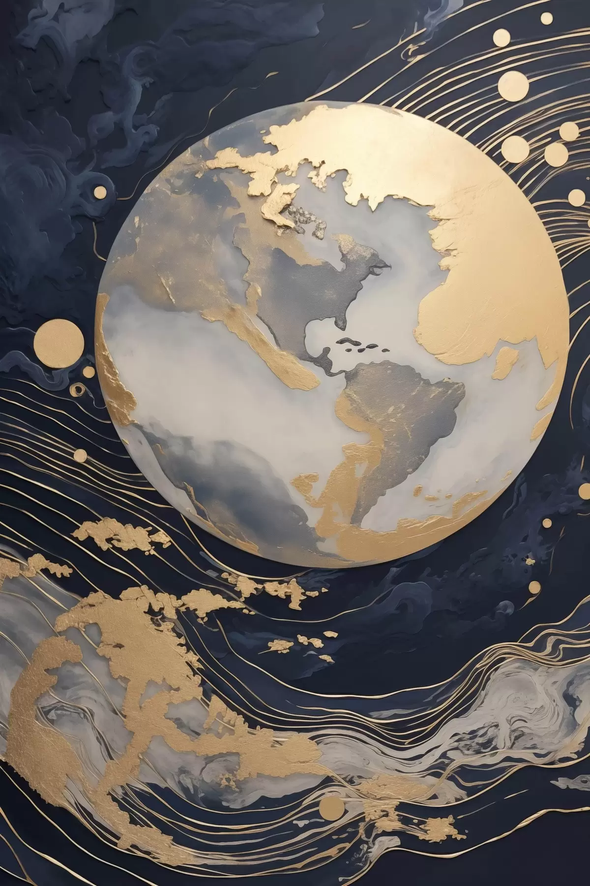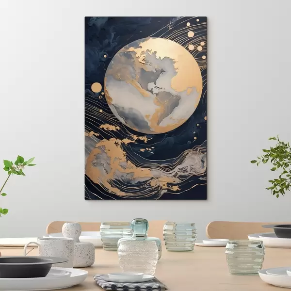 Glezna Teksturēta dekoratīva planēta ar dzeltenām līnijām fonā, dzelteniem punktiem fonā, tumšs fons Nr s46708