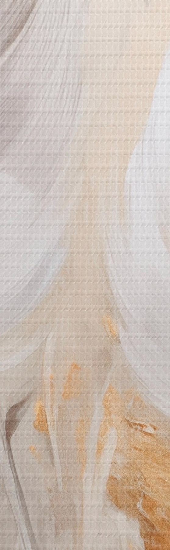 Glezna Abstraktas spalvas, apņemtas ar smilškrāsas un brūnas plūmas, maigas un delikātas, uz gaiši smilškrāsas fona. s46711