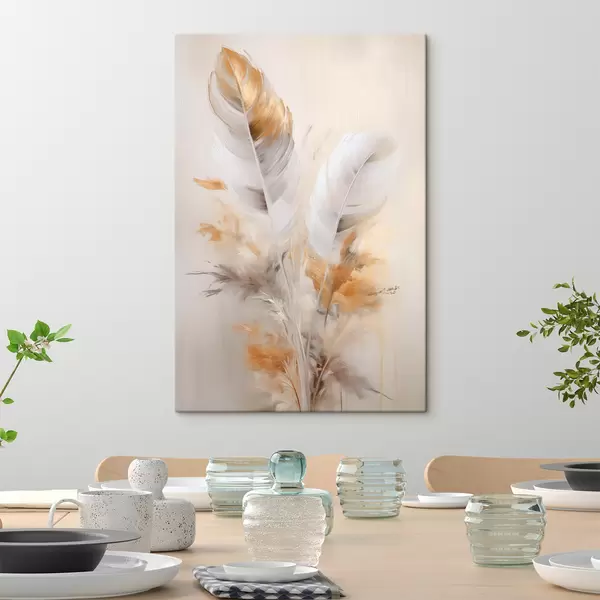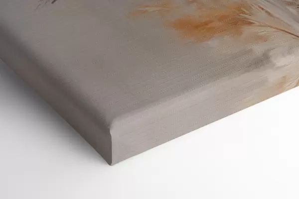 Glezna Abstraktas spalvas, apņemtas ar smilškrāsas un brūnas plūmas, maigas un delikātas, uz gaiši smilškrāsas fona. s46711