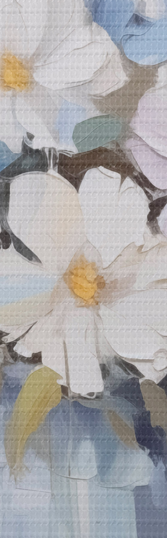 Smalkais diegu pinums uz šī audekla atgādina profesionālu mākslinieku audeklu virsmu.