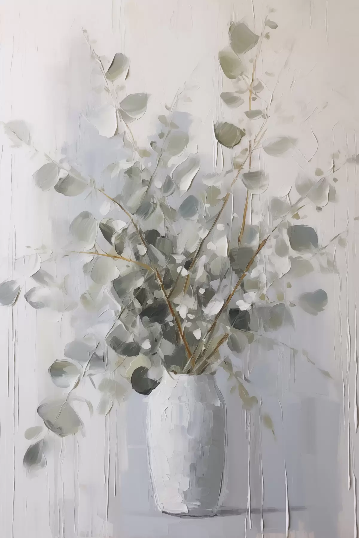 Glezna Zari ar lapām vāzē, imitācijas glezna Nr s46720