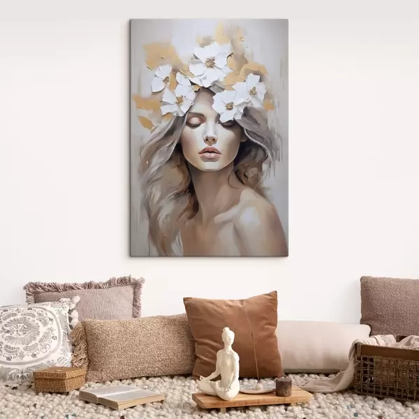 Glezna Meitenes abstraktais portrets ar ziediem s46757