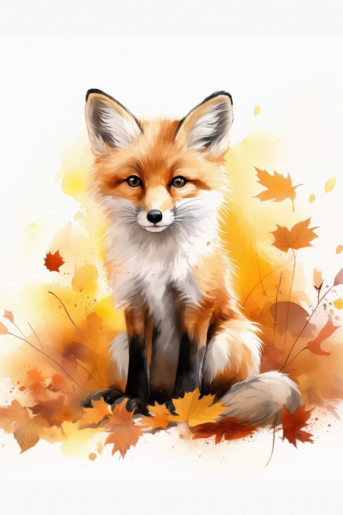 Glezna Mazā lapsa, akvareļa imitācija s46768
