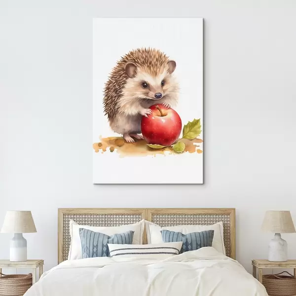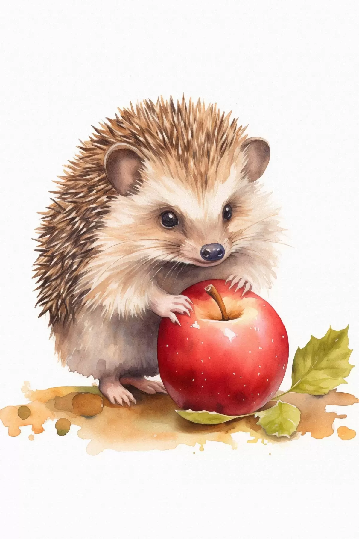 Glezna Ežuks un ābols, akvareļa imitācija Nr s46769